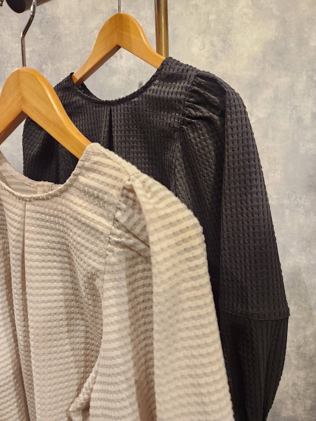張りのある素材なので袖のボリュームも立体的できれいなシルエットに◎