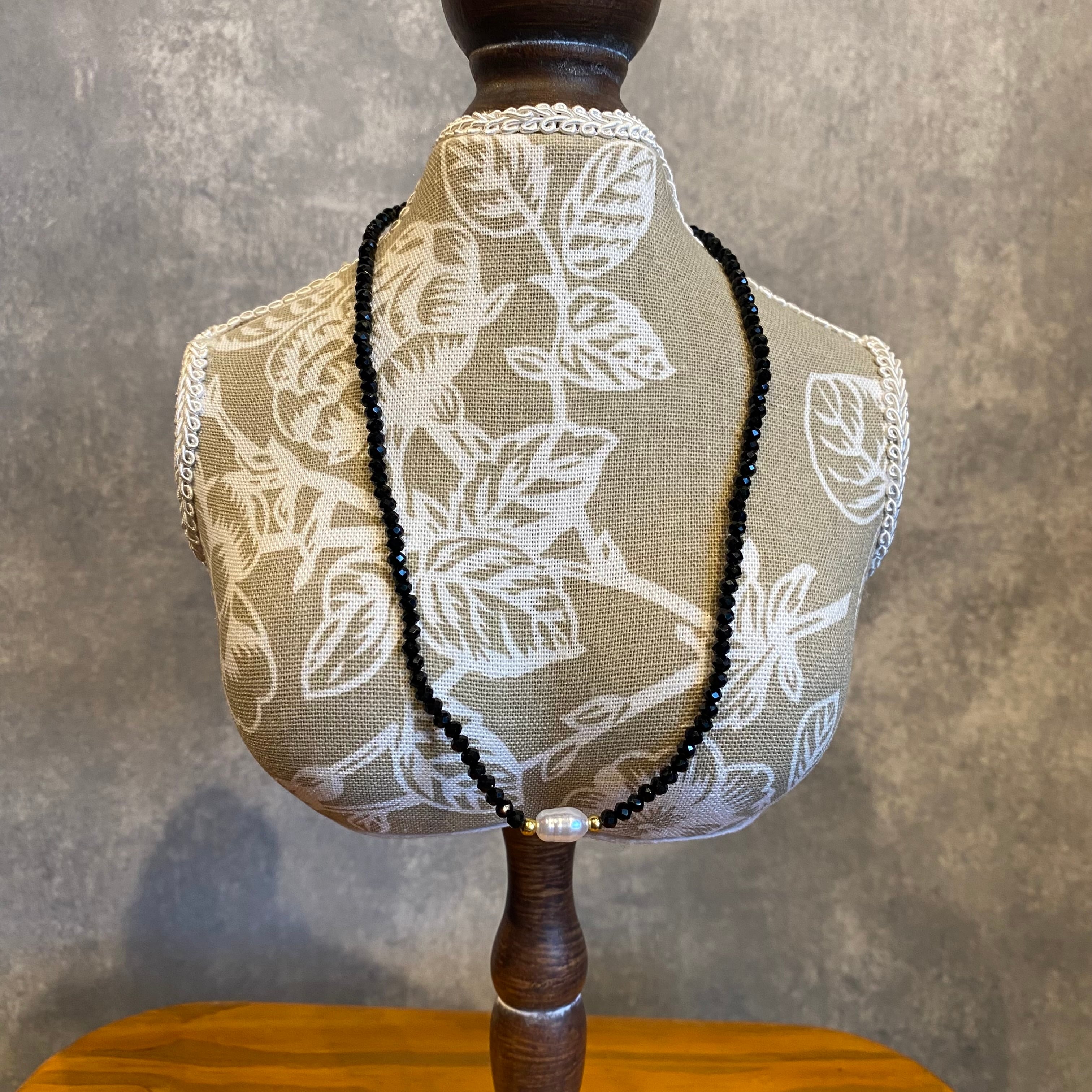 シックで洗練された印象のブラック×パールネックレス!深い黒色のブラックガラスと美しいパールが絶妙に調和し、スタイリッシュな印象を与えます。特別な日のお洒落や普段使いまで、幅広いシーンで活躍するアイテムです。