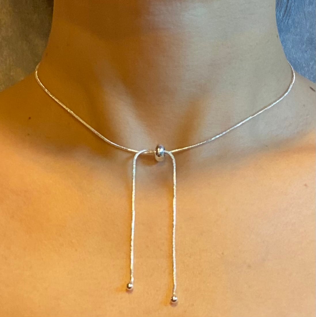 軽やかな着け心地で、さまざまなスタイルに寄り添います。シンプルなデザインなので、他のアクセサリーとの重ね付けにも最適です。シルバーチョーカーを身に着けて、あなたの個性を一層引き立てるスタイルを楽しんでください。