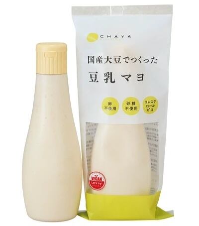 卵を使わずに国産大豆を使った豆乳マヨです。