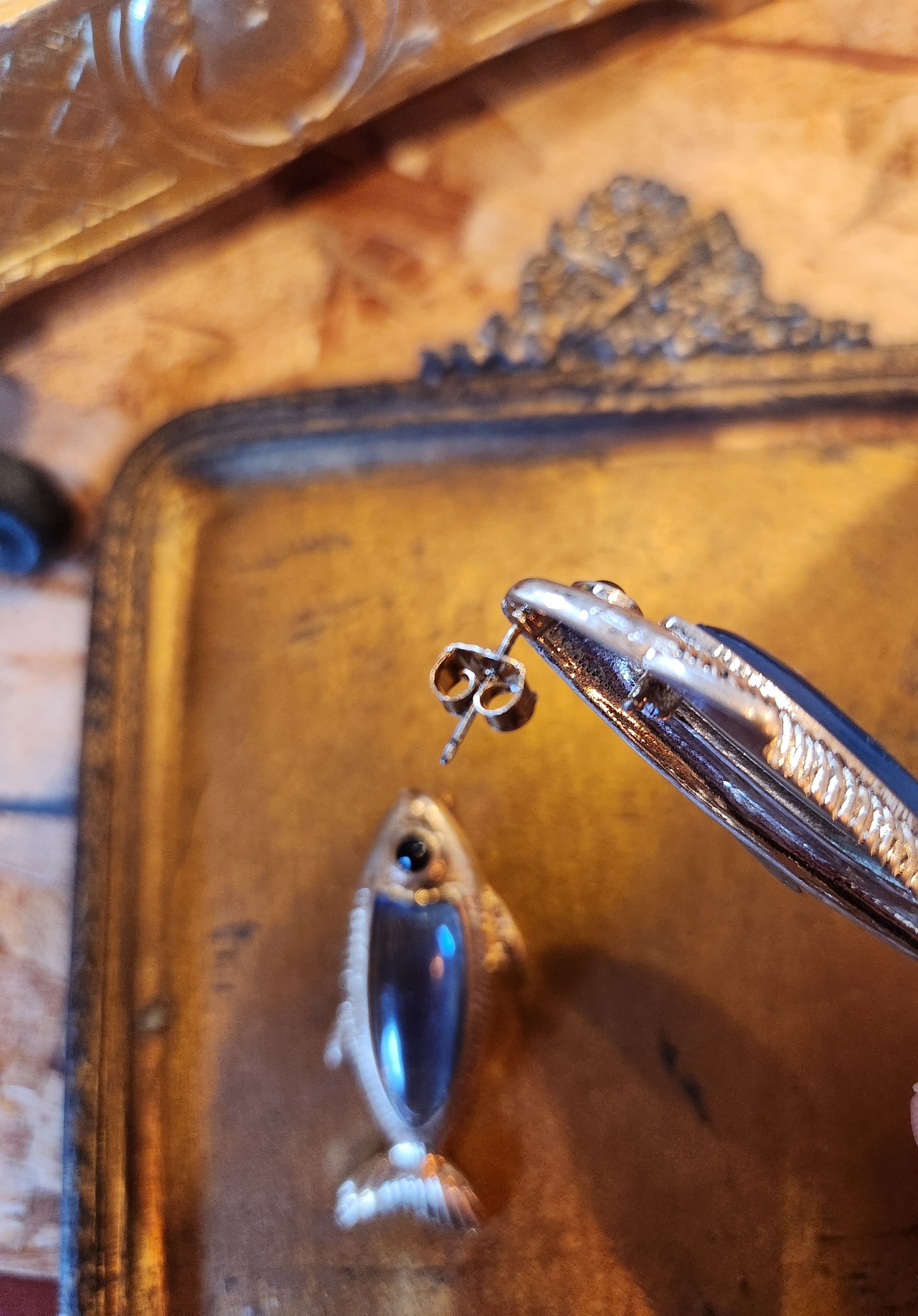 ブルーの透明感とゴールドがインパクト大なピアス