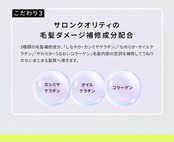 また、3種の補修MIX処方(加水分解ケラチン(カシミヤ)、オイルケラチン、吸着コラーゲン)を配合し、ダメージでゴワつきがちな髪も柔らかくしなやかな状態に。