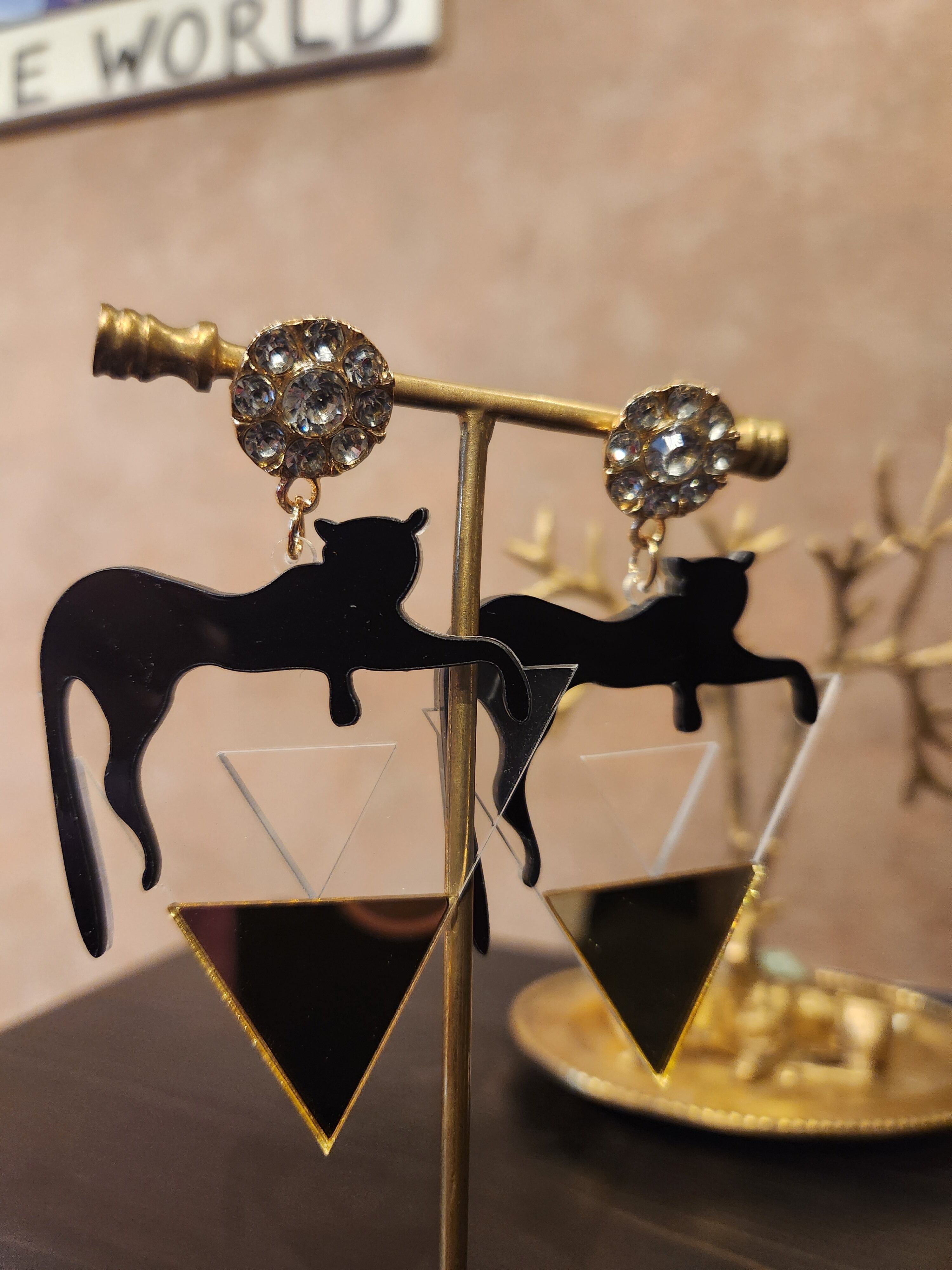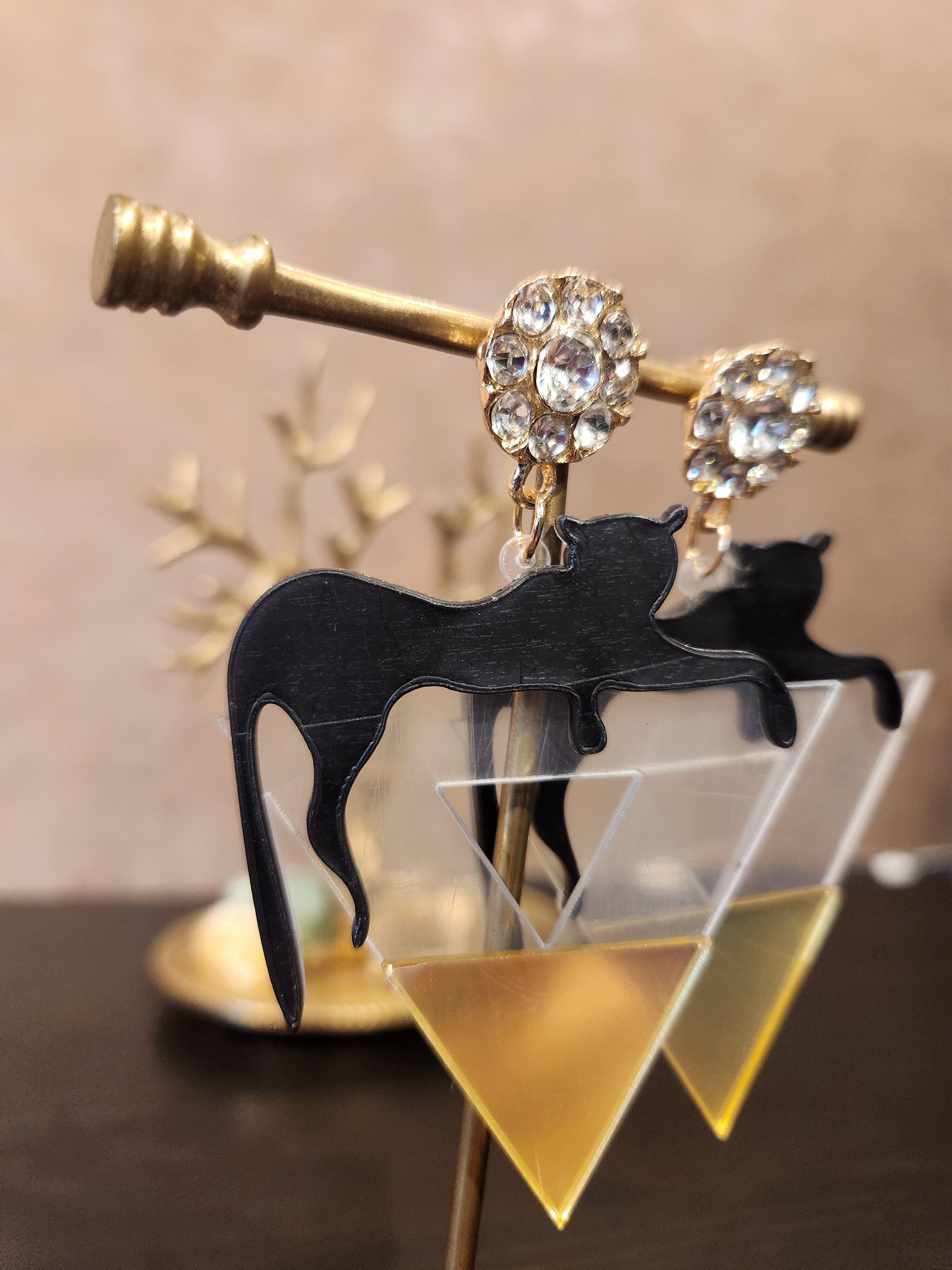 チーター鎮座。アクリルでカットされてる軽量ですがゴージャスなピアス。
