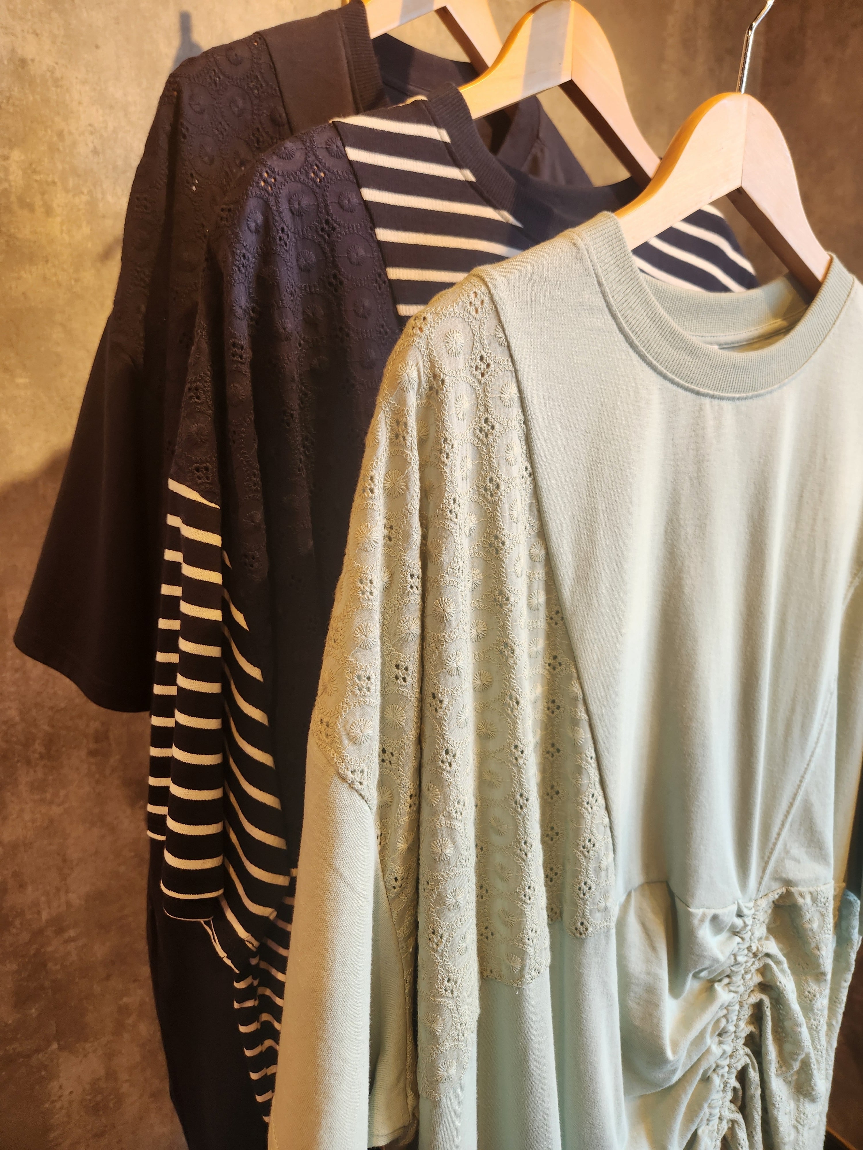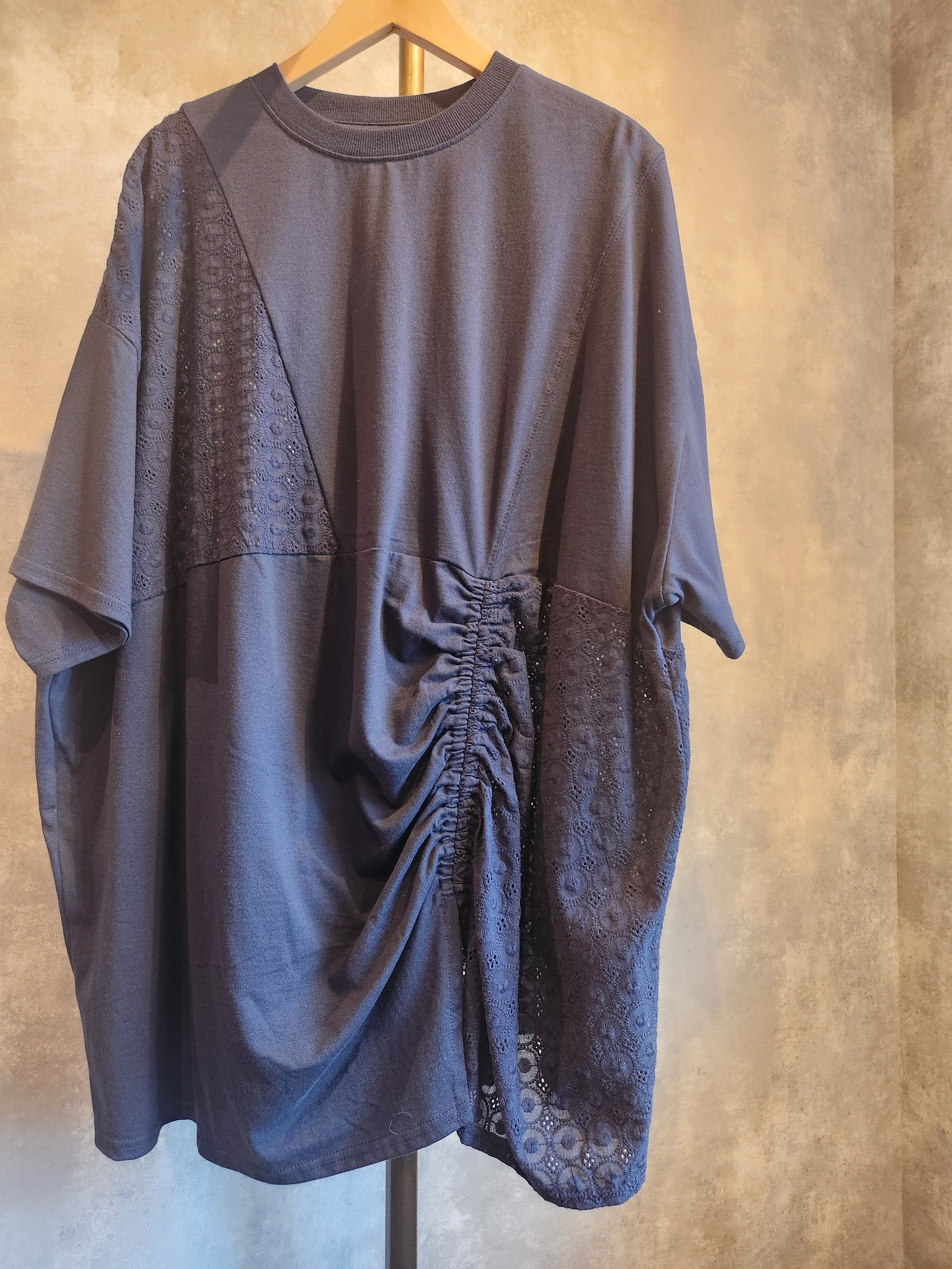 #A355 コットンレースパッチワークTシャツ