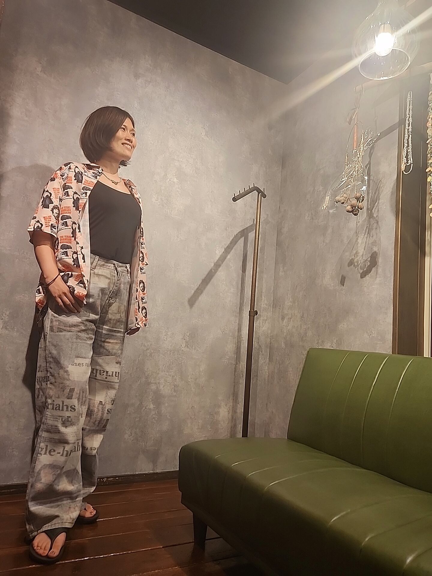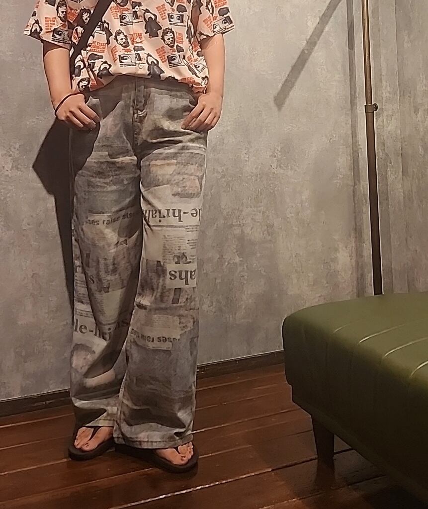 淡い色合いに英字がプリントされ主張しすぎず、合わせやすい柄モノ
