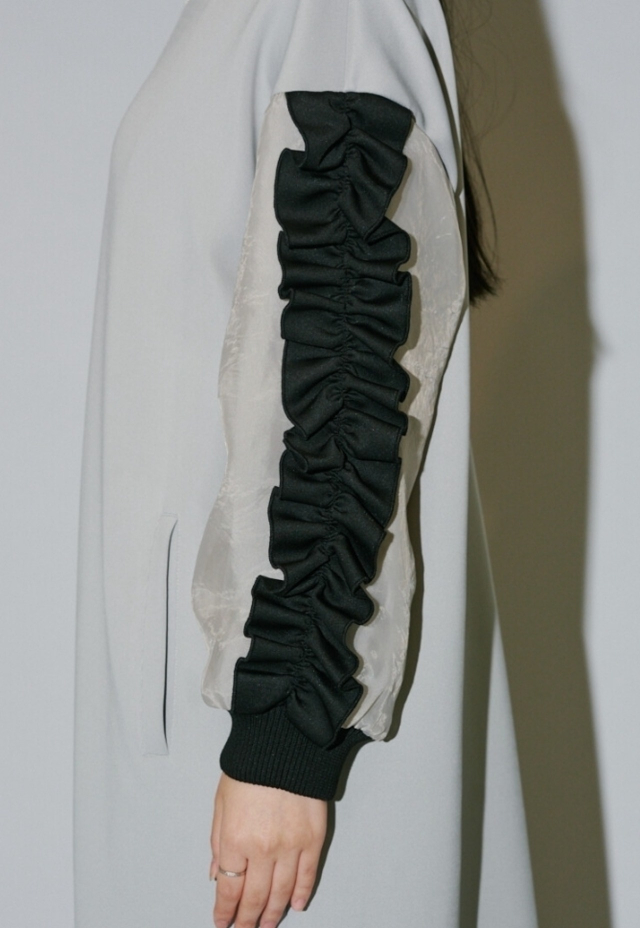 袖部分にフリルデザインを施し、一枚でもコーデが完成する