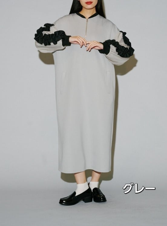 ◆フリルスリーブブルゾンワンピース