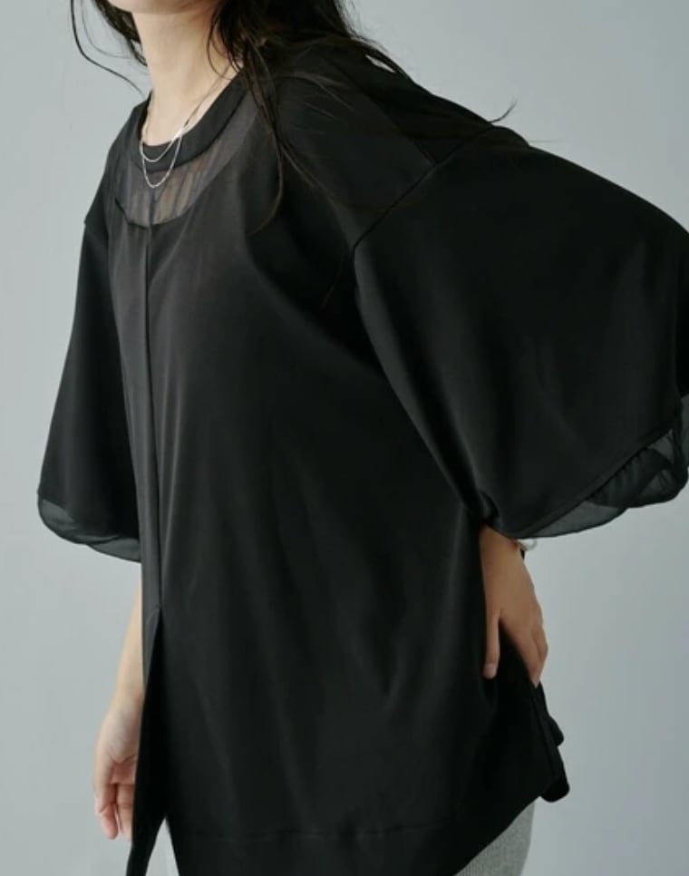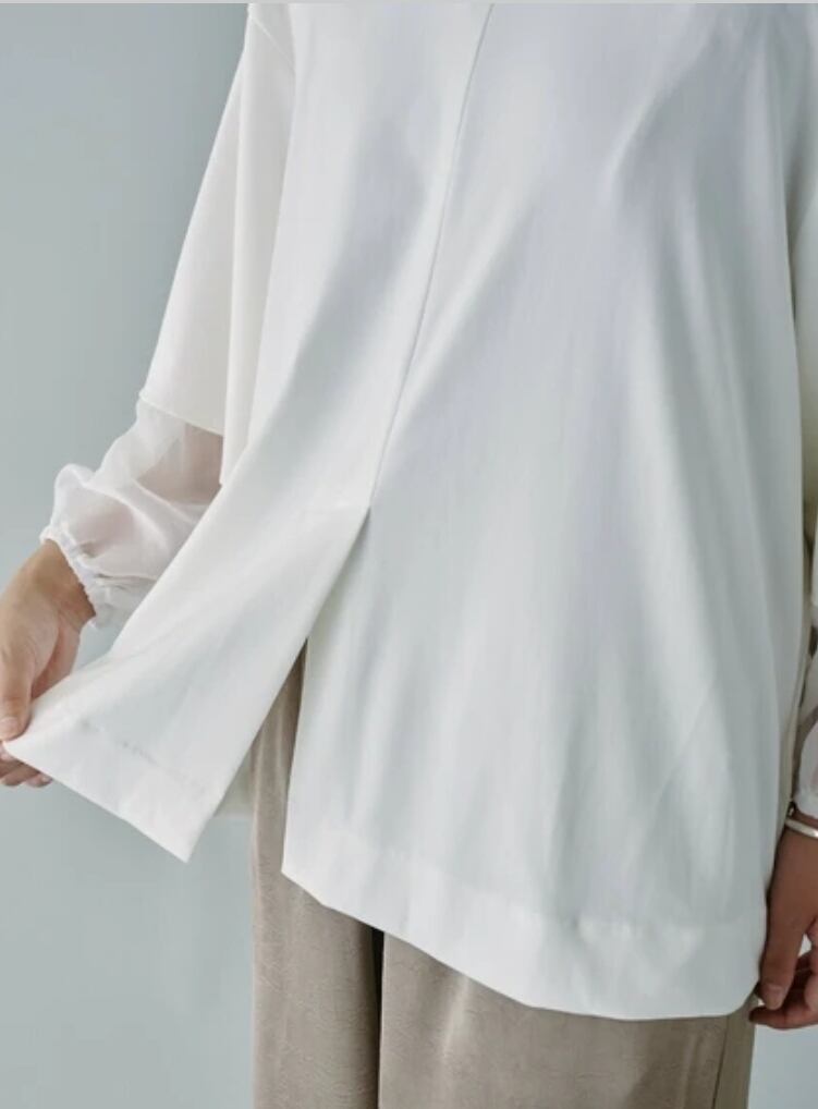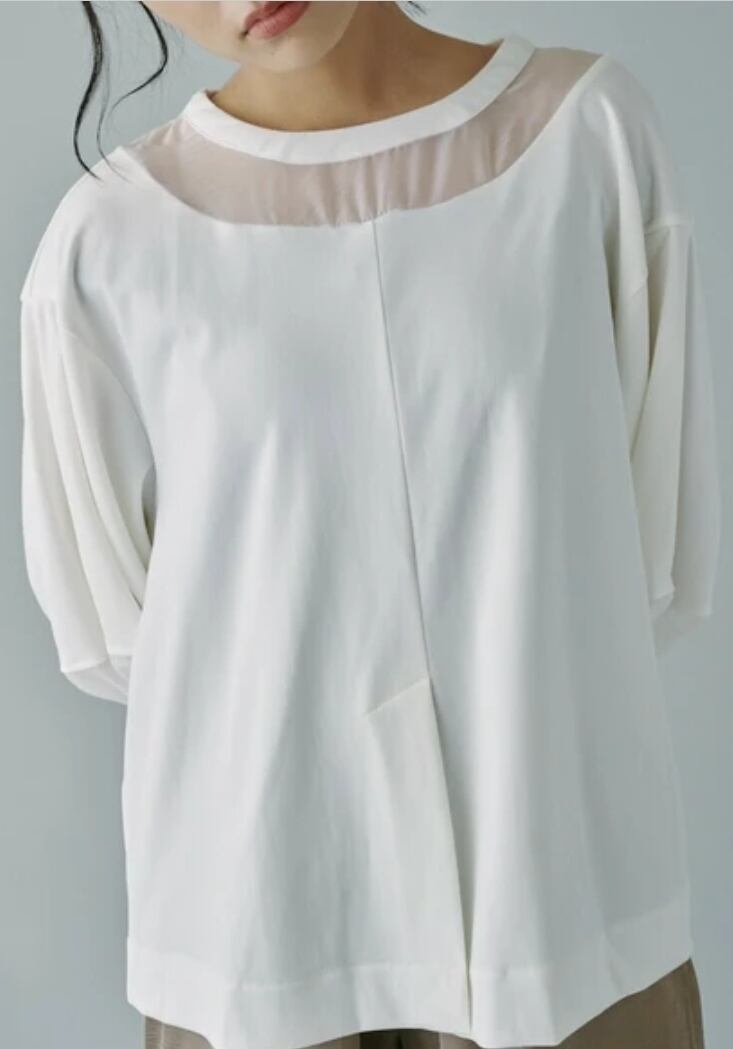 いつものTシャツをこちらに変えるだけで大人っぽさをプラスできます◎