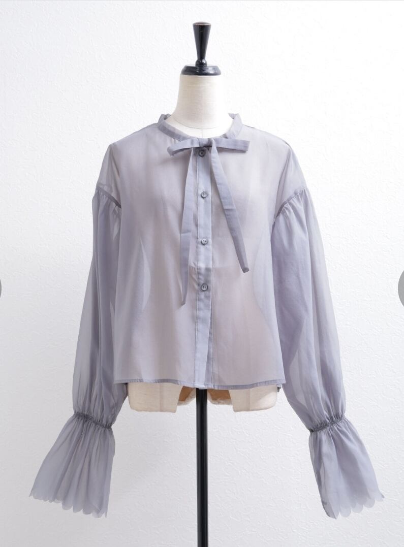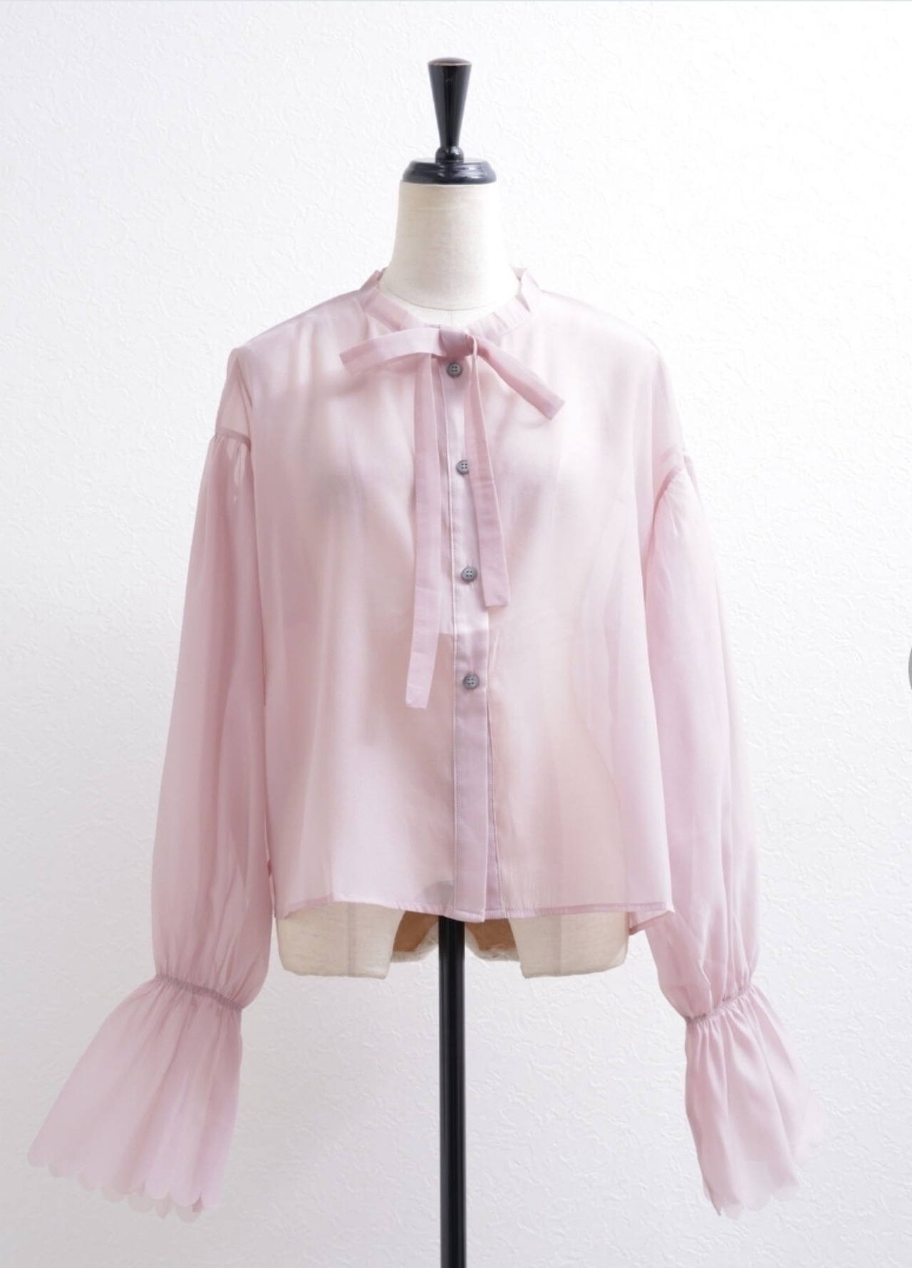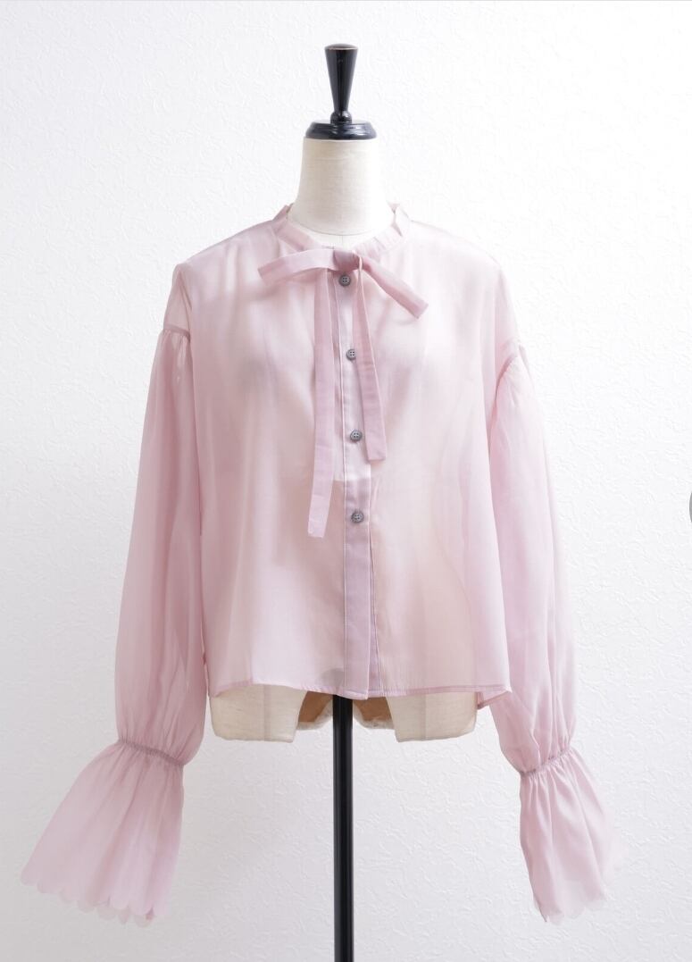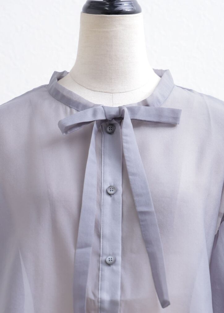 細めのリボンタイが上品さとガーリーさを絶妙なバランスで保ちます。