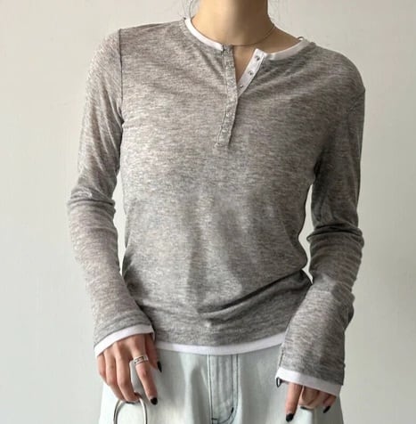 ヘンリーネックのデザインがトレンドライクな長袖プルオーバー