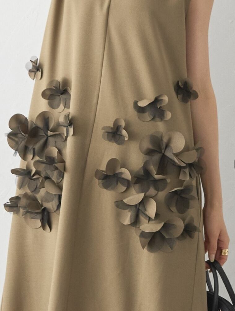 チュールをレイヤードしたフラワーモチーフがインパクトのあるワンピース