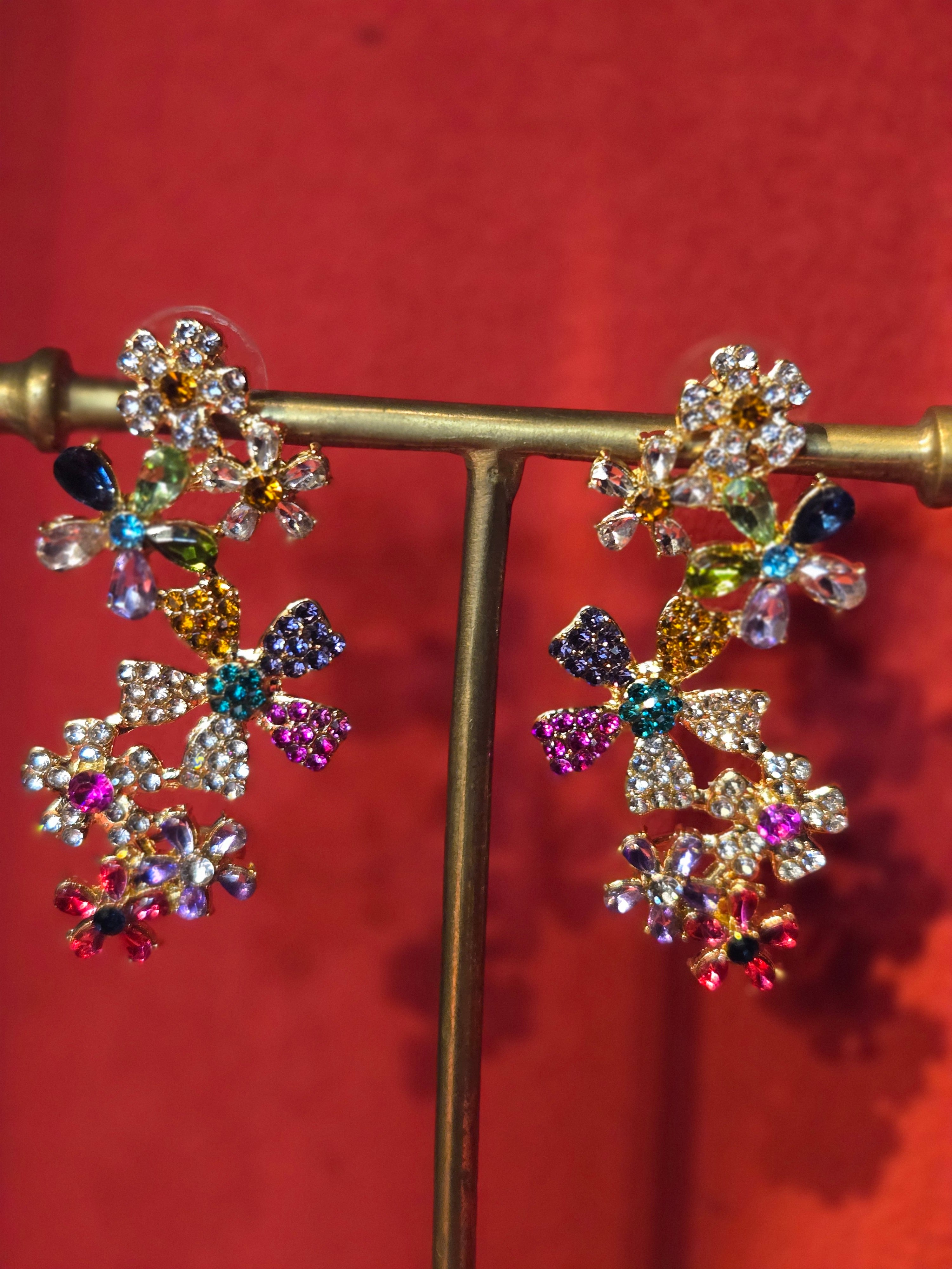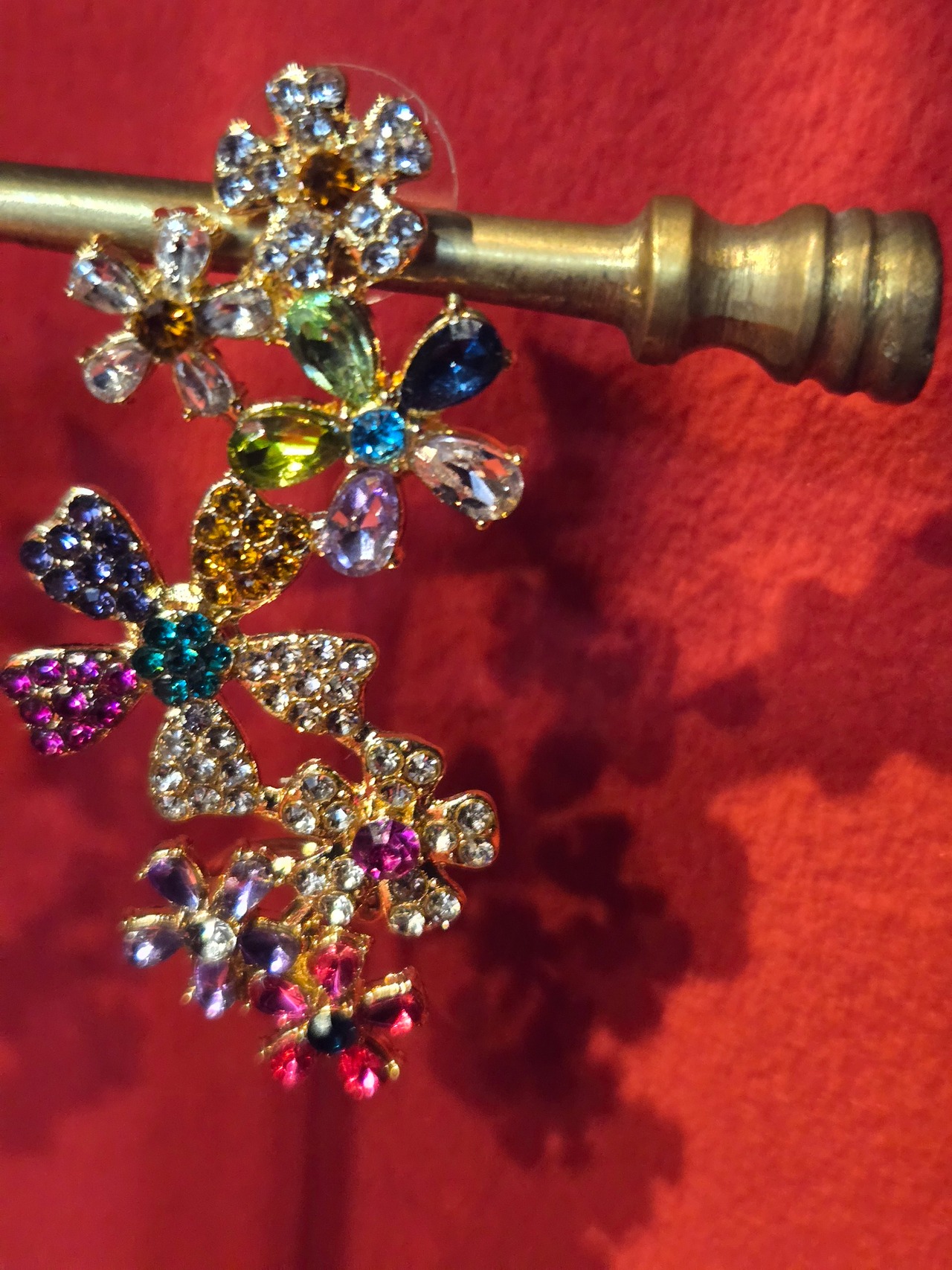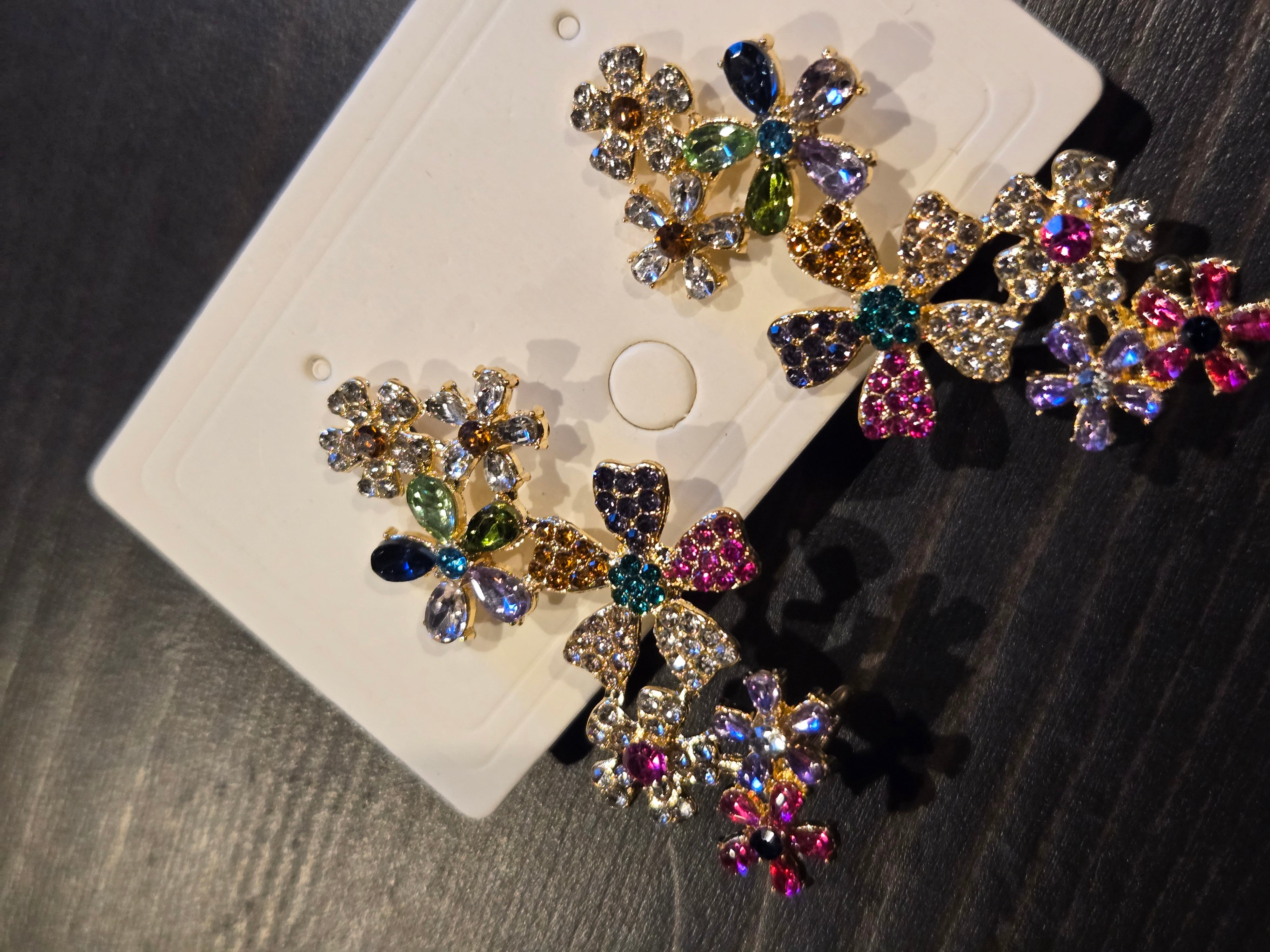 お花の形のビジューがキラキラ、耳に沿わせて、上をカフで留められるピアスです。