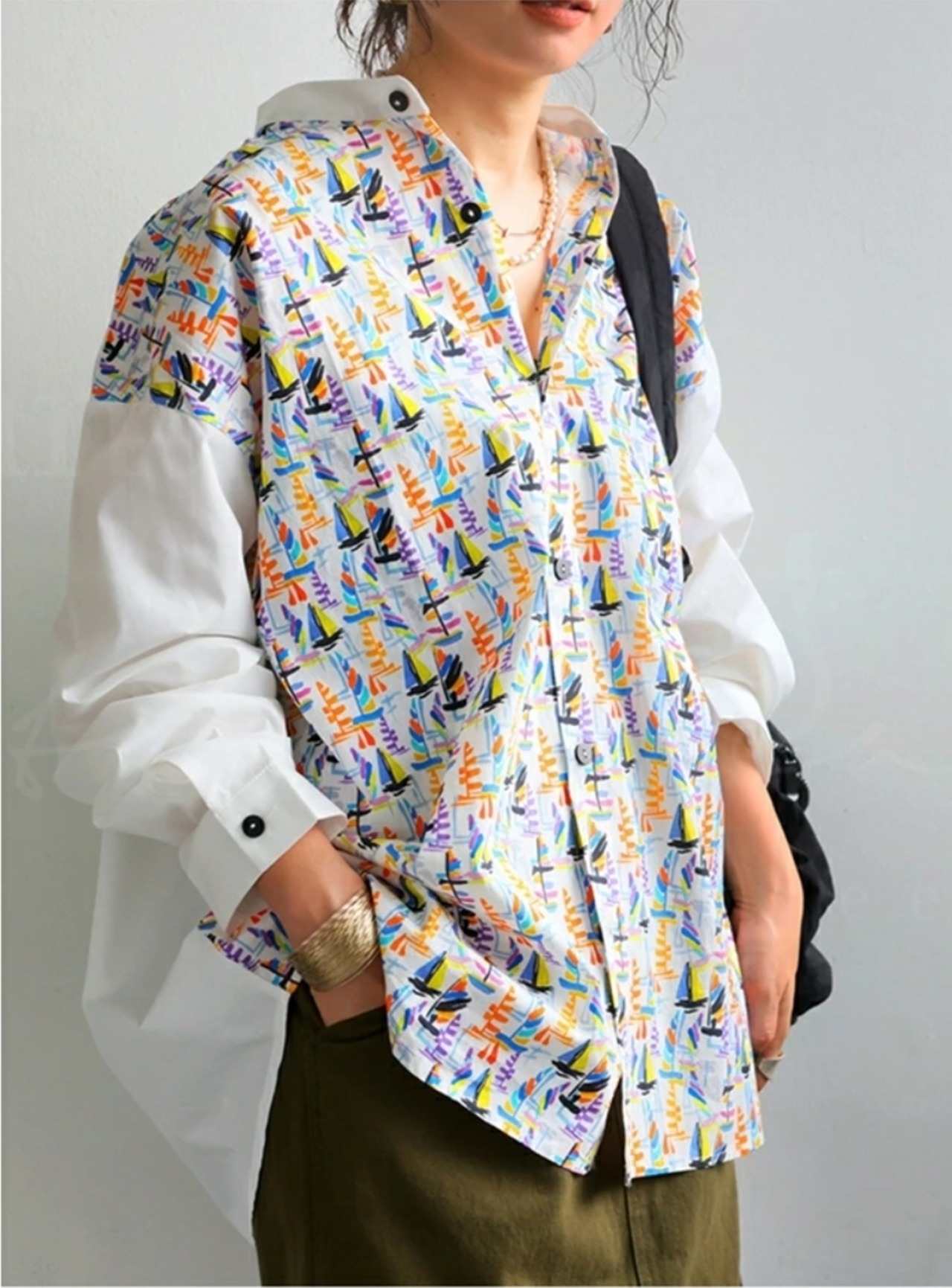 ヨット柄Yシャツ。ユニセックスな仕様です。