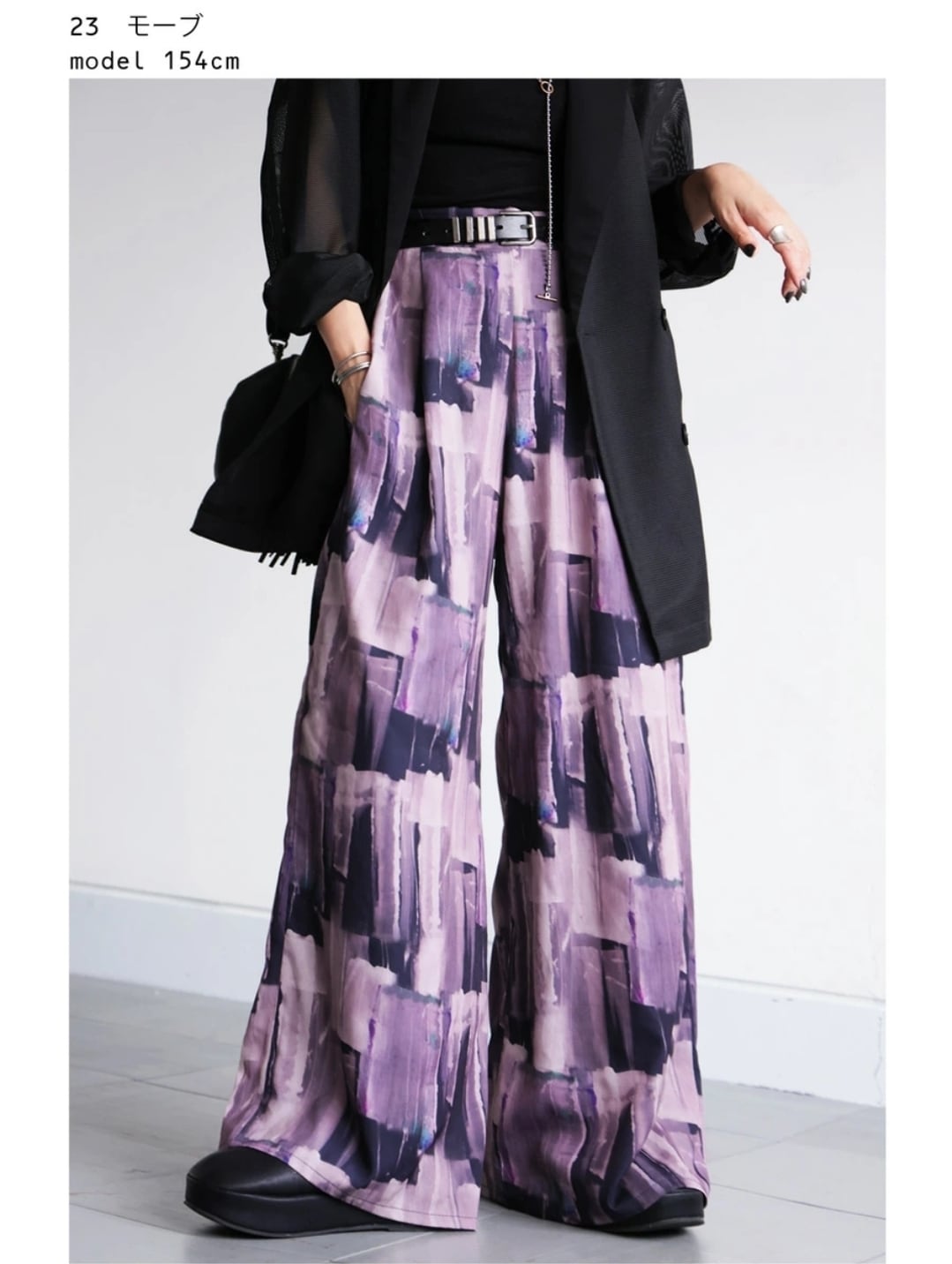 感性をまとう、主役級の存在感。まるでキャンバスに絵具を重ねたような、印象的なアート柄が目を惹くワイドパンツが登場しました。