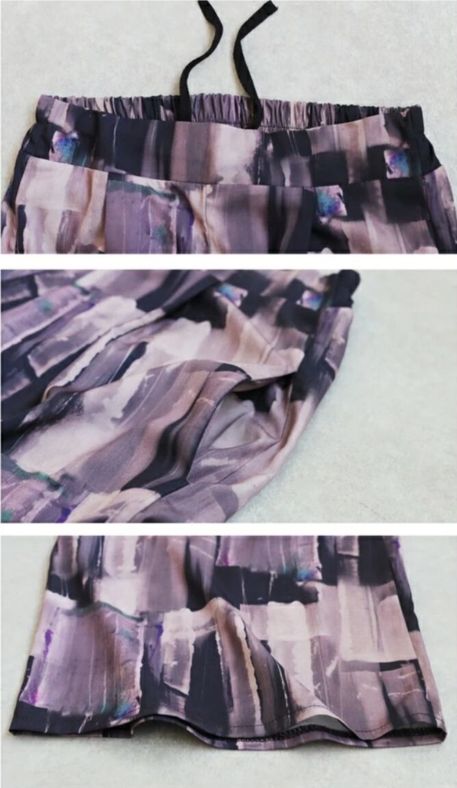動きに合わせて揺れるドレープが女性らしさを引き立てながらも、ラフに穿けるストレスフリーな穿き心地。