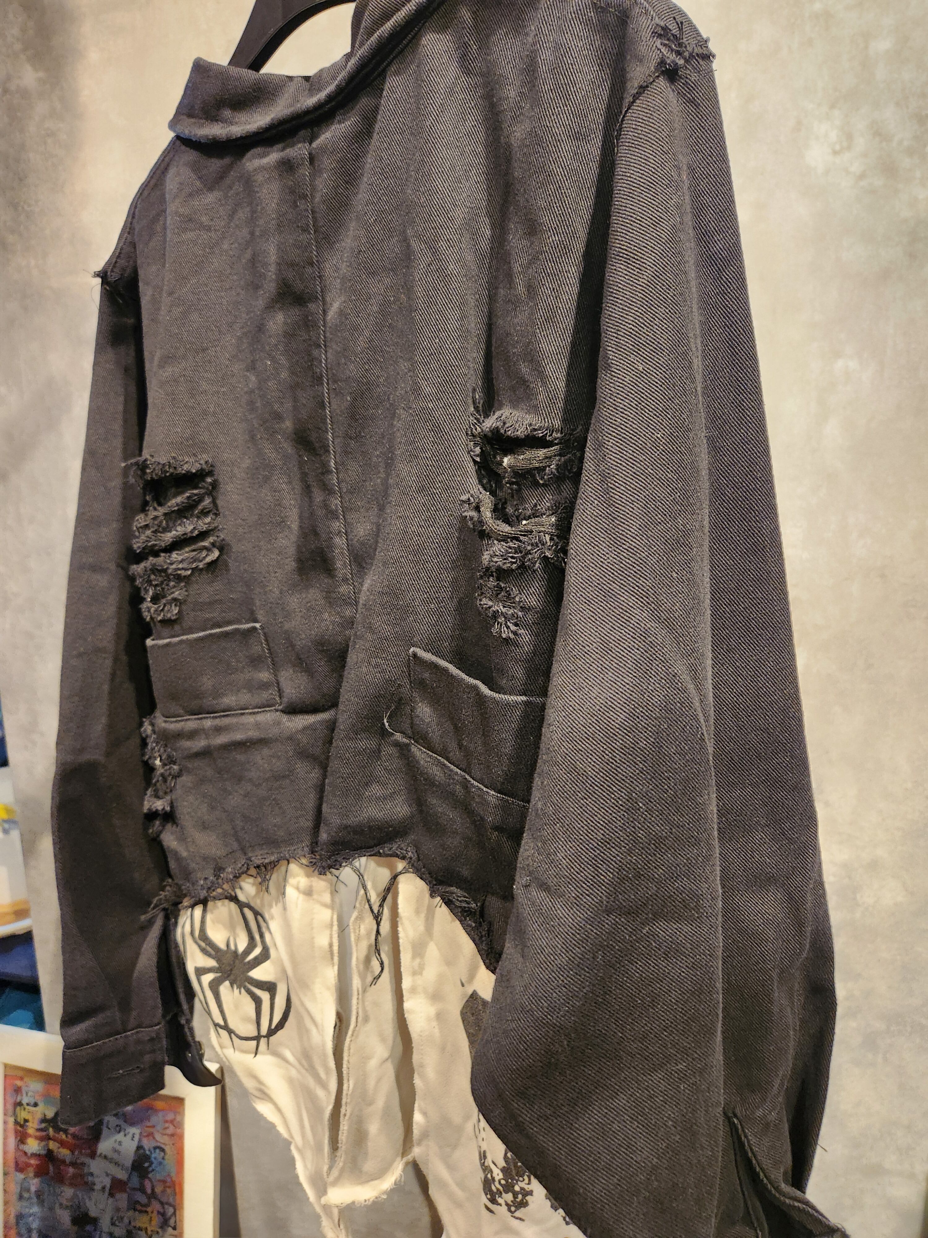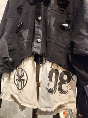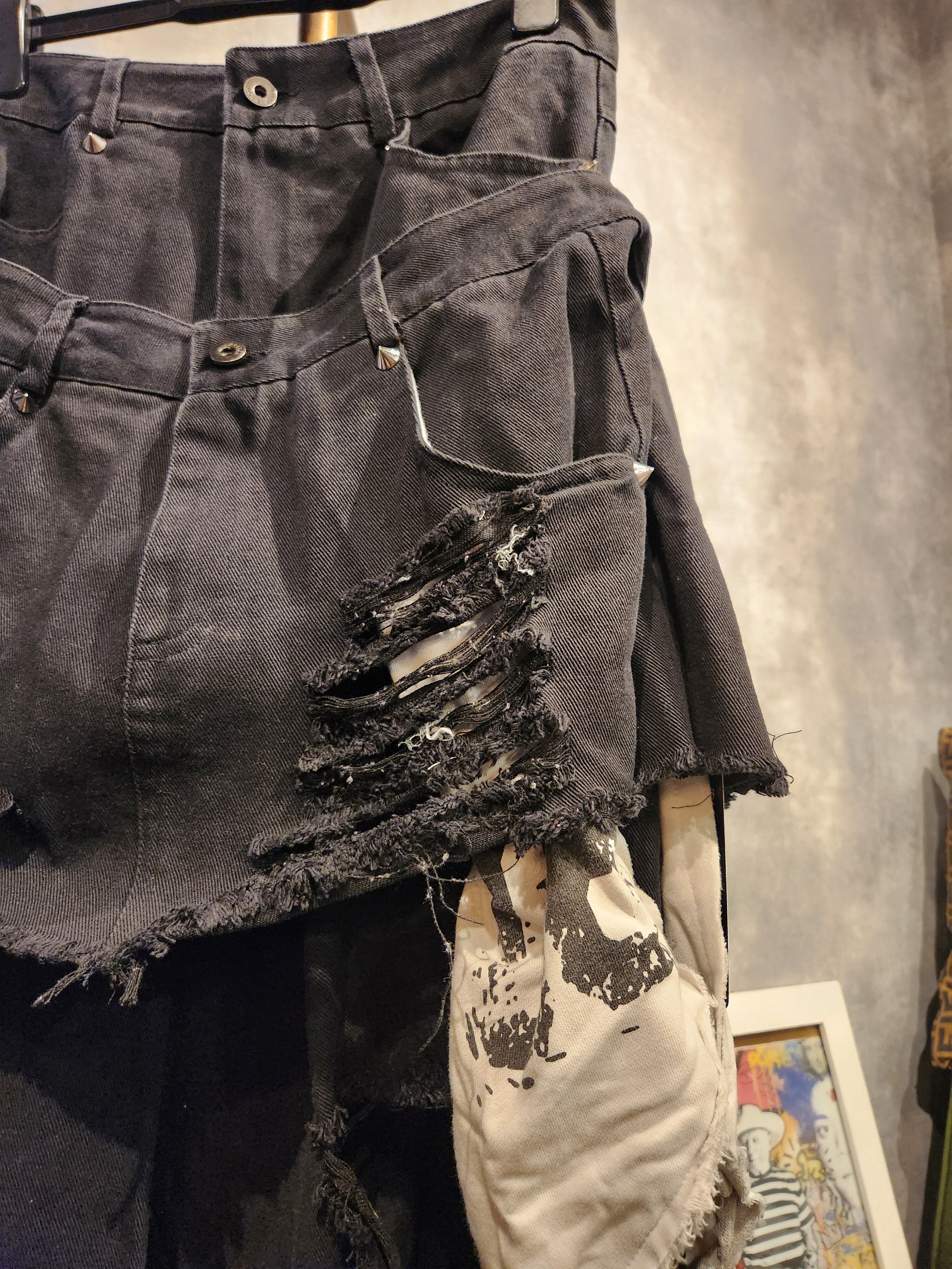 ダメージ加工とスウェットに描かれたパンチのあるデザインがオシャレ
