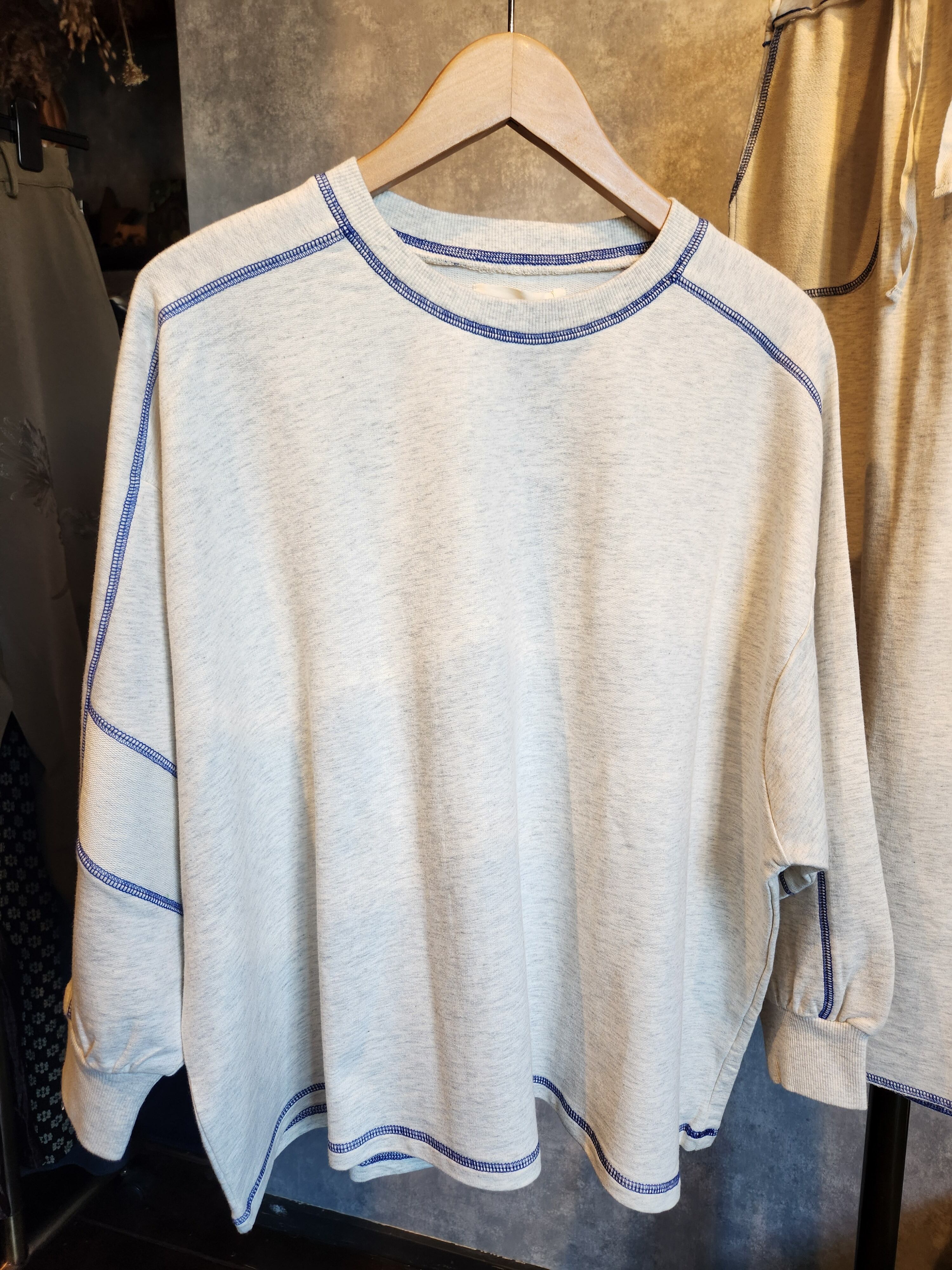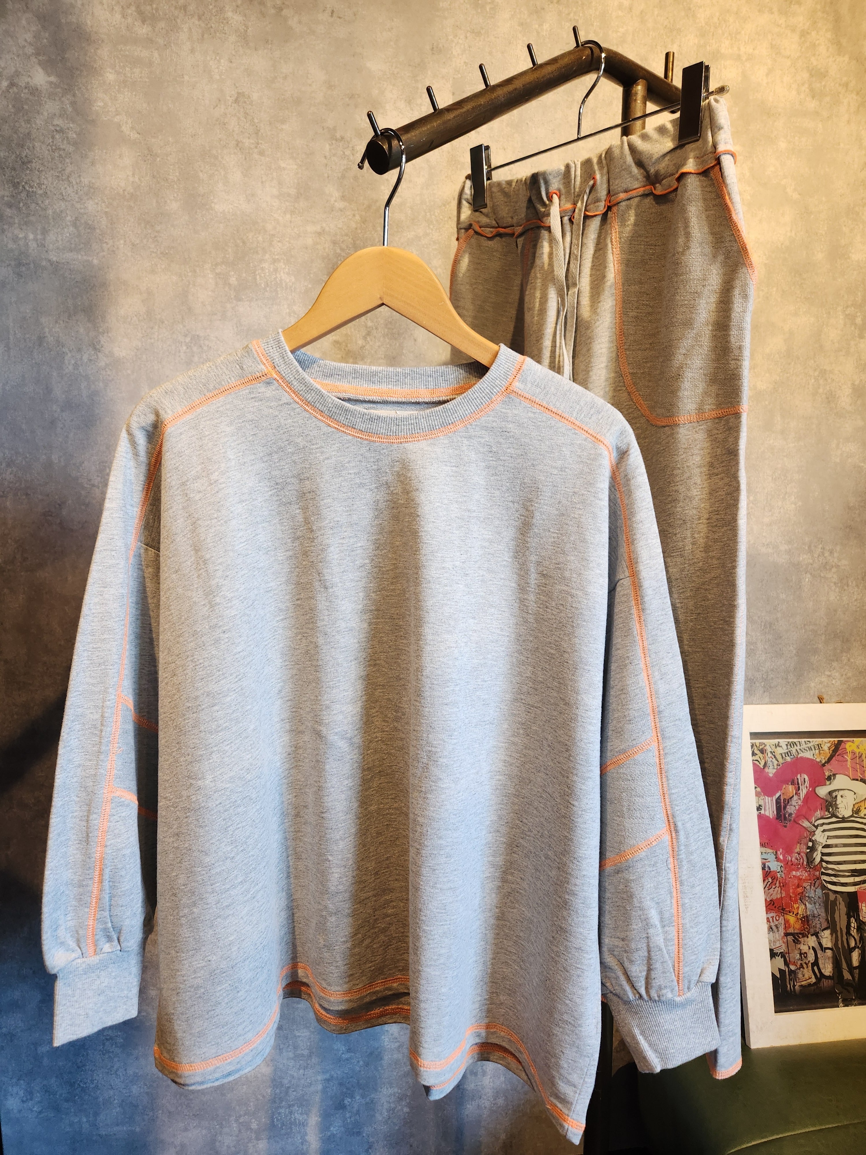 ネオンカラーの配色ステッチがこなれ感満載のカジュアルスウェットトップス
