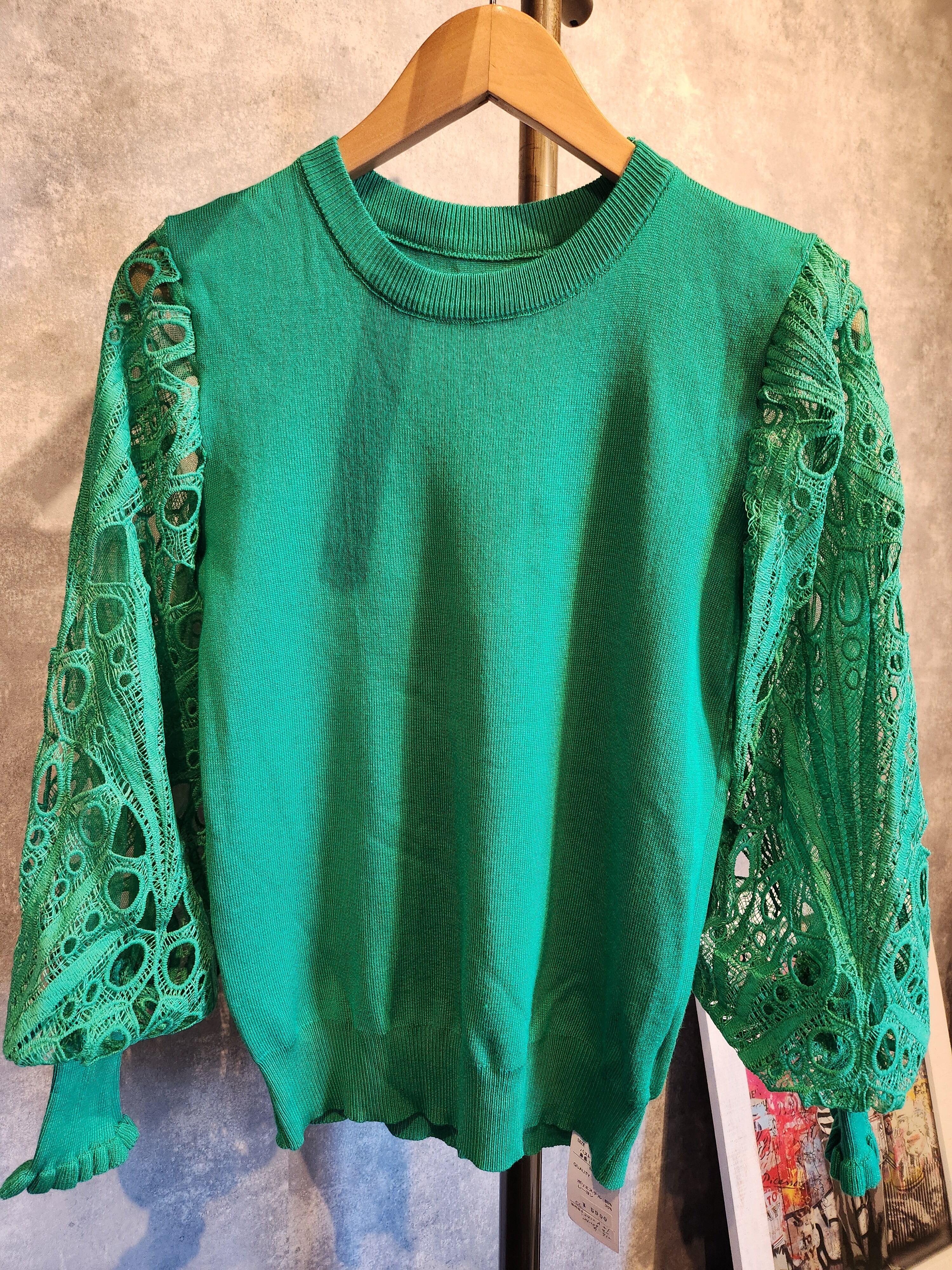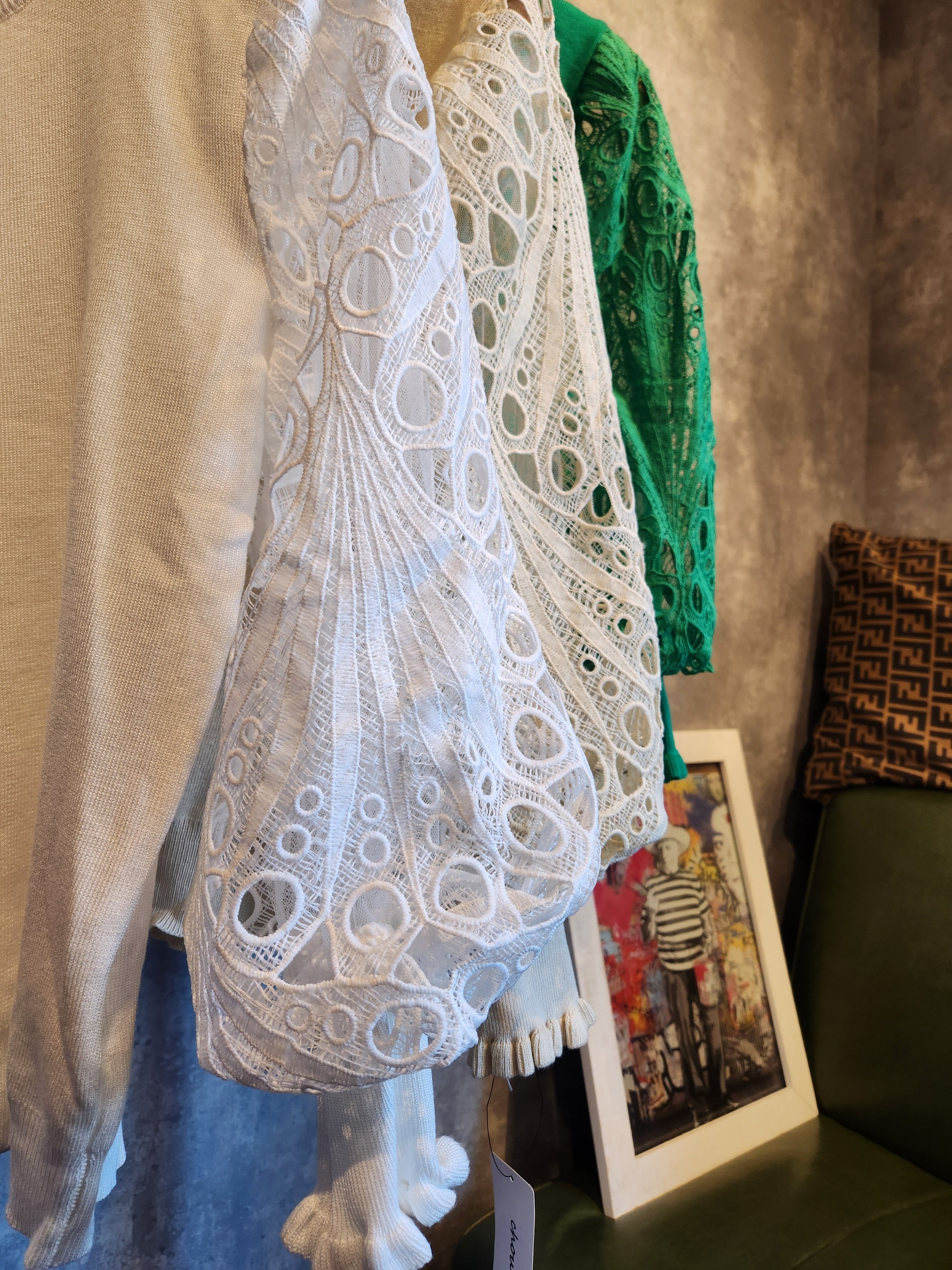 シンプルな身頃と華やかな袖デザインがバランスよく、大人女性のスタイリングを格上げします。