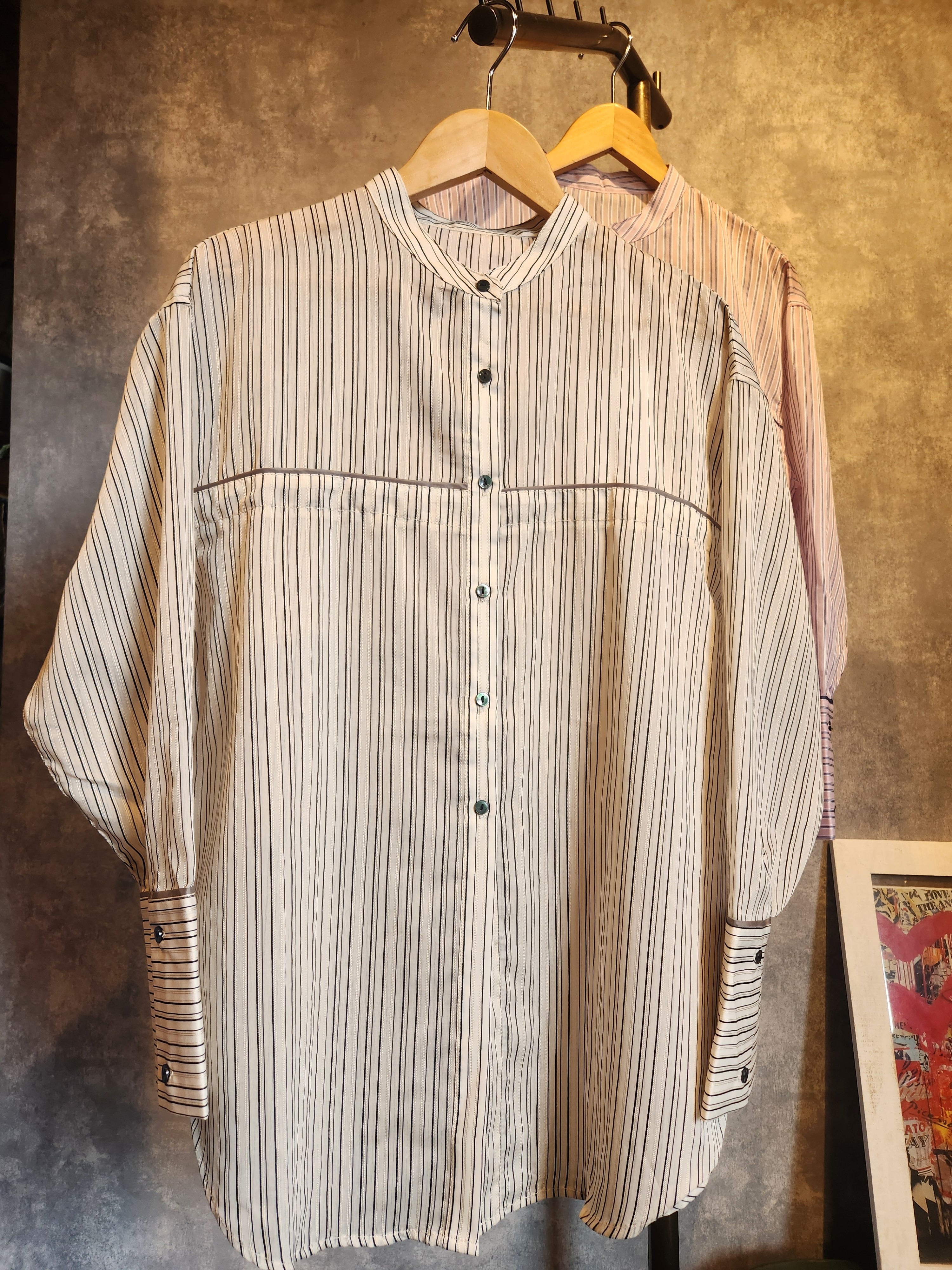 ヨーク、カフスには配色のパイピングをアクセントに。少しオーバーサイズでスタイリングに抜け感をプラスできます。ベーシックな形で着回し力も◎