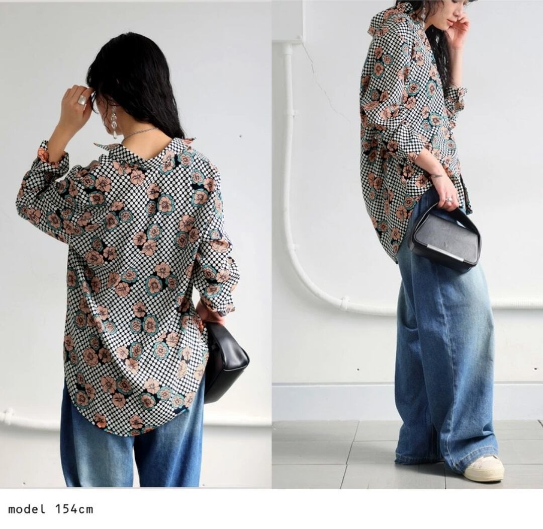 日常使いしやすい『レトロフラワーシャツ』