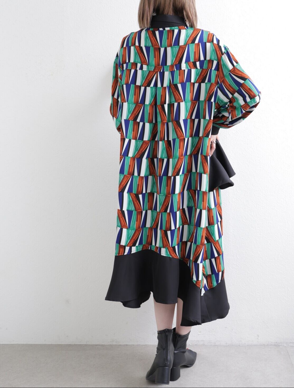 カラフルな柄と、左右アシンメトリーなデザイン。