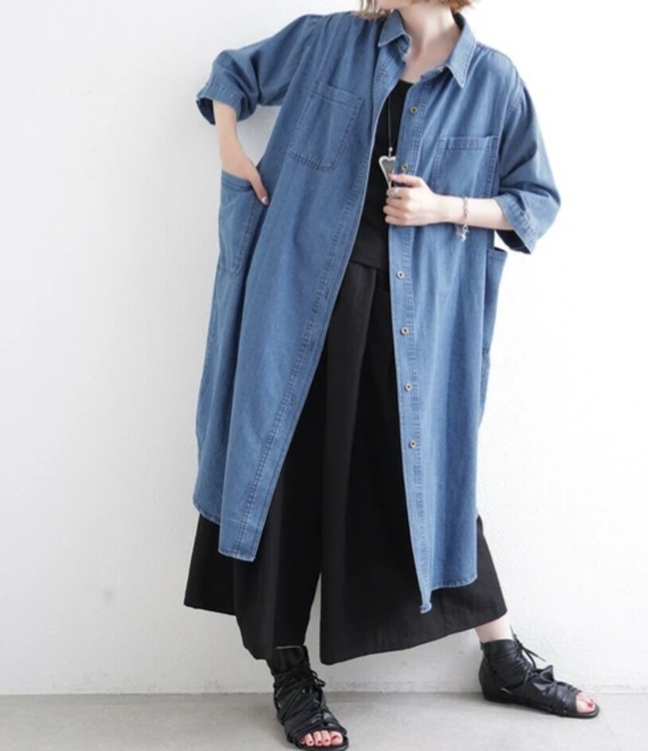 ポケットが4か所についた、オーバーブラウス。