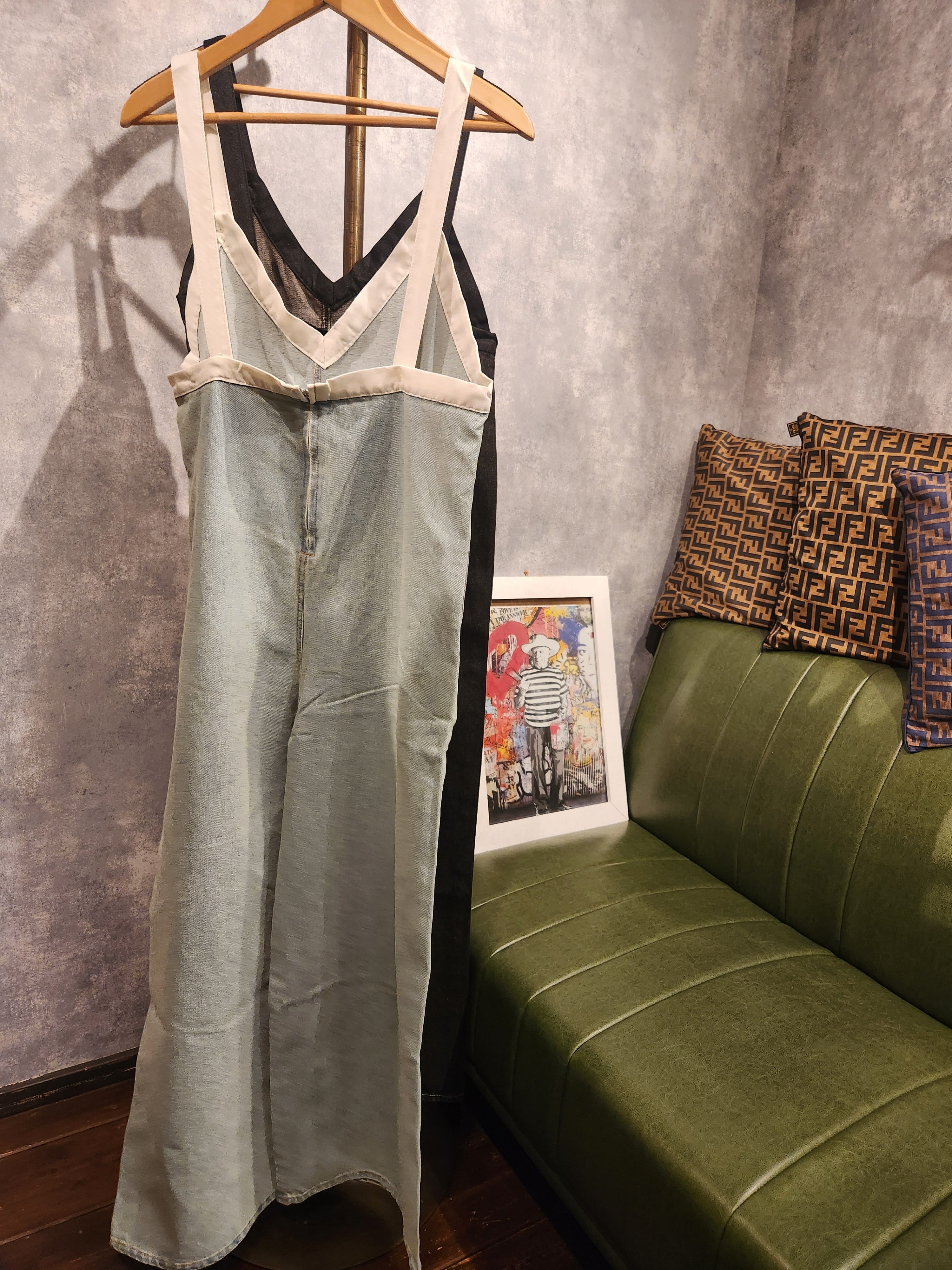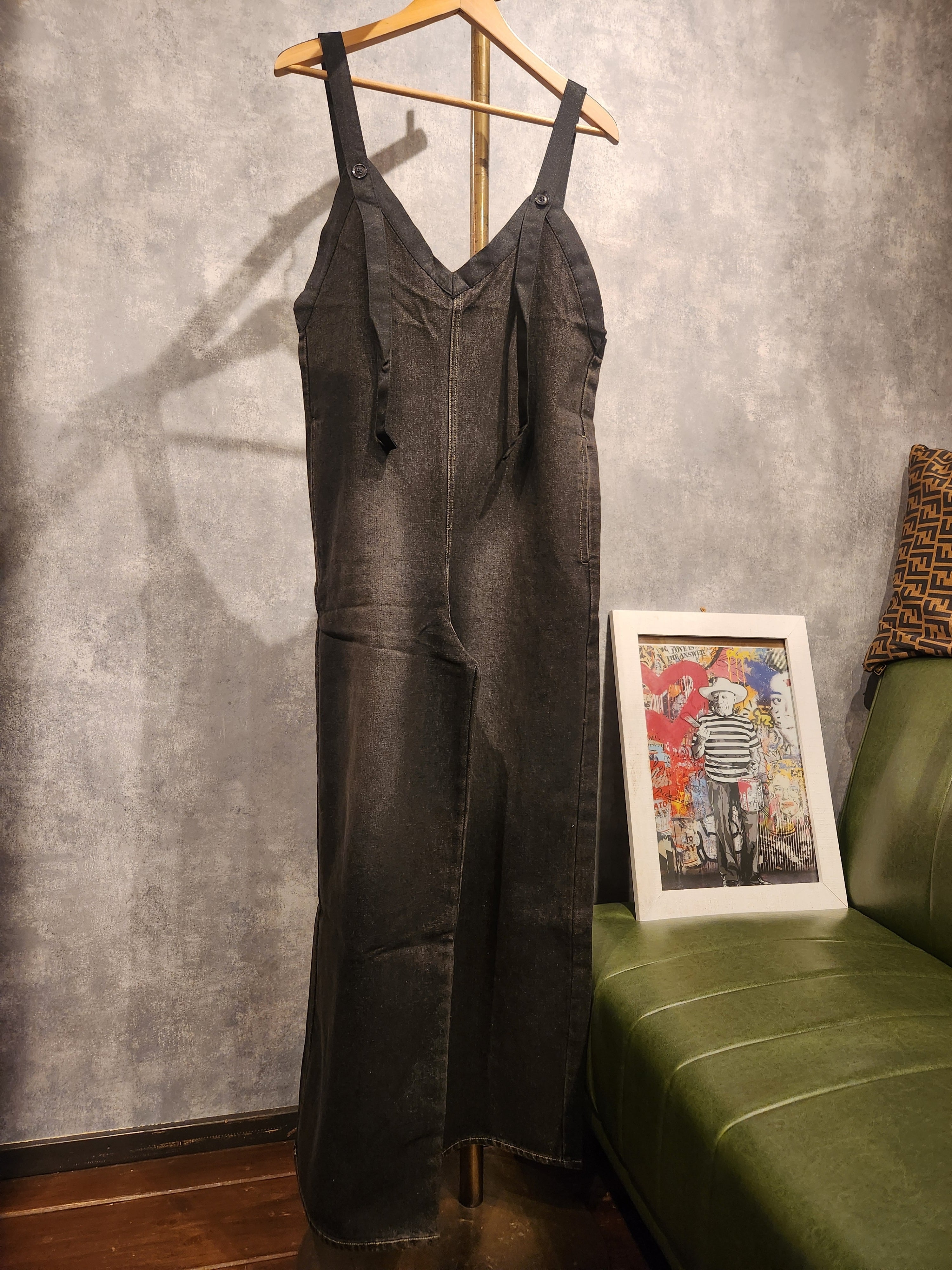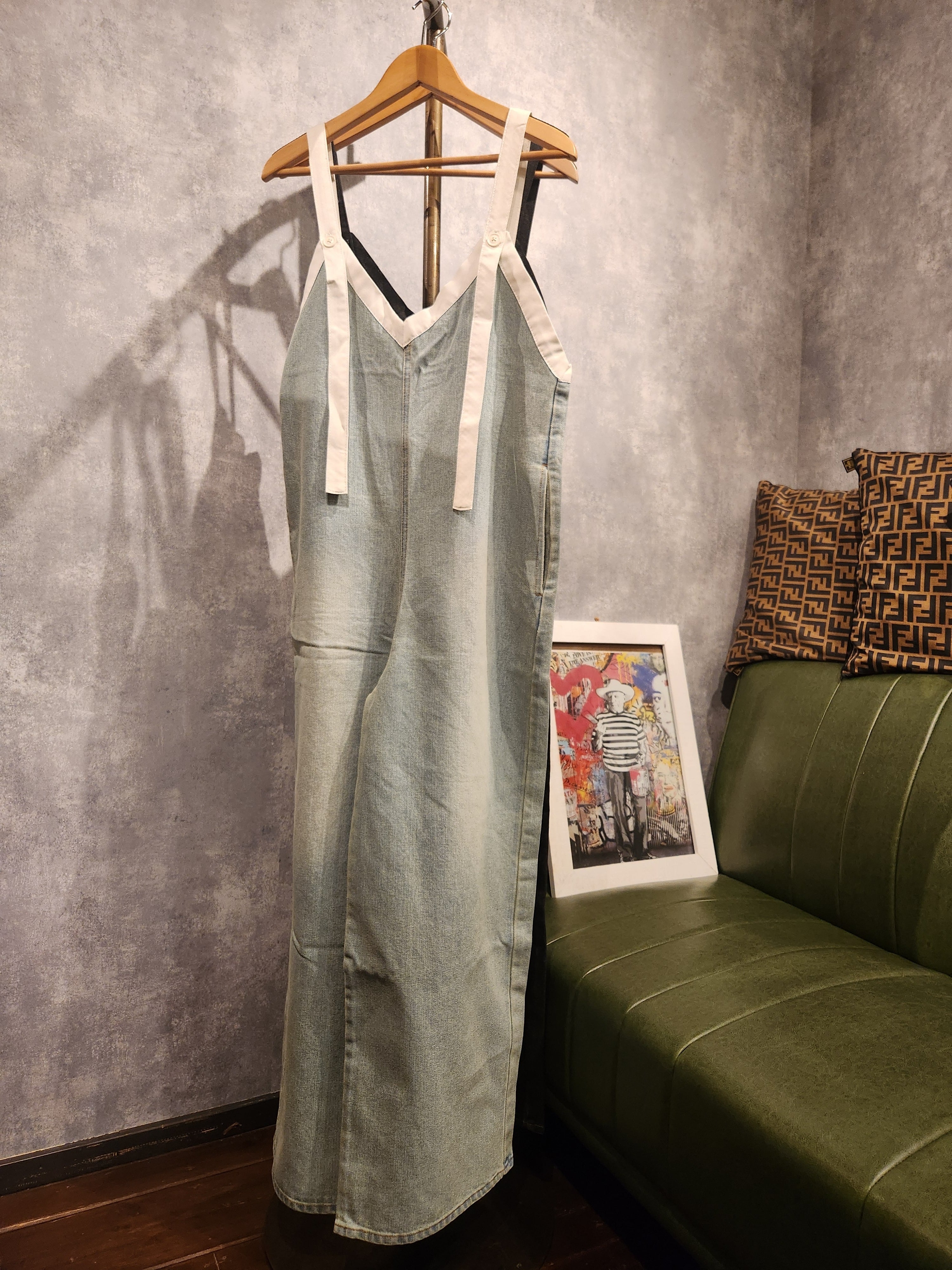 しっかりとしたデニム素材にテープデザインをあしらった、存在感抜群のオールインワン。 フロントジップ仕様で着脱がスムーズ、ウエストマークやポケット使いで実用性も◎。 程よくゆとりのあるシルエットがこなれ感を演出し、カジュアルからストリートスタイルまで幅広く活躍。 一枚で主役になるデザインながら、インナー次第でシーズンレスに着回せる万能アイテムです。