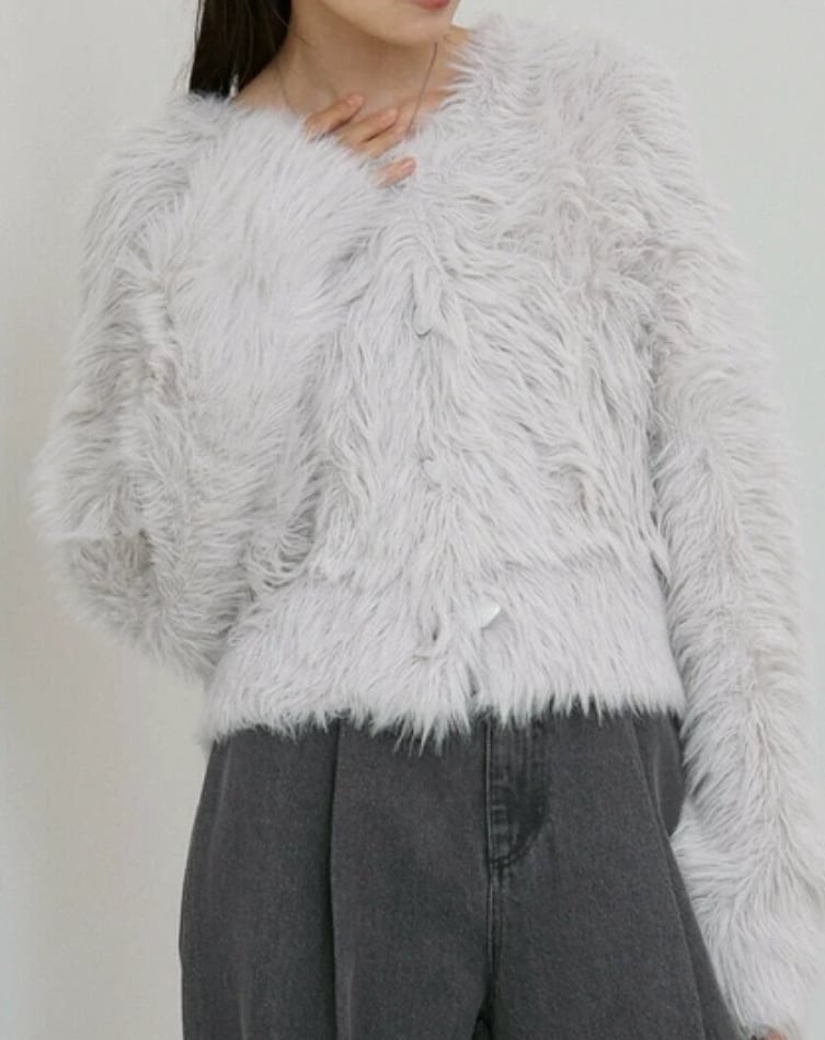 ふわっと柔らかく、高級感のある着心地のいいシャギーカーディガンです。