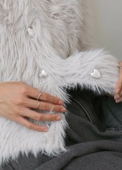ボタン部分はハートになっていてガーリーな一面もあるカーディガンは、この秋冬大活躍すること間違いなしです。アイボリーのみボタン部分がゴールドに、そのほかのカラーはシルバーになっています。ふわっとしていて暖かいシャギーが着るだけでフェミニンな印象を与えます。華奢見えするようなデザインになっています。