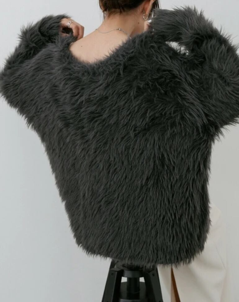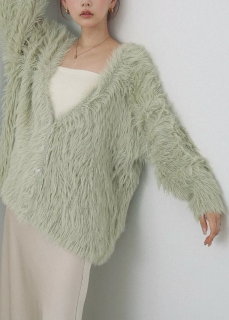 ふわっと柔らかく、高級感のある着心地のいいシャギーカーディガンです。