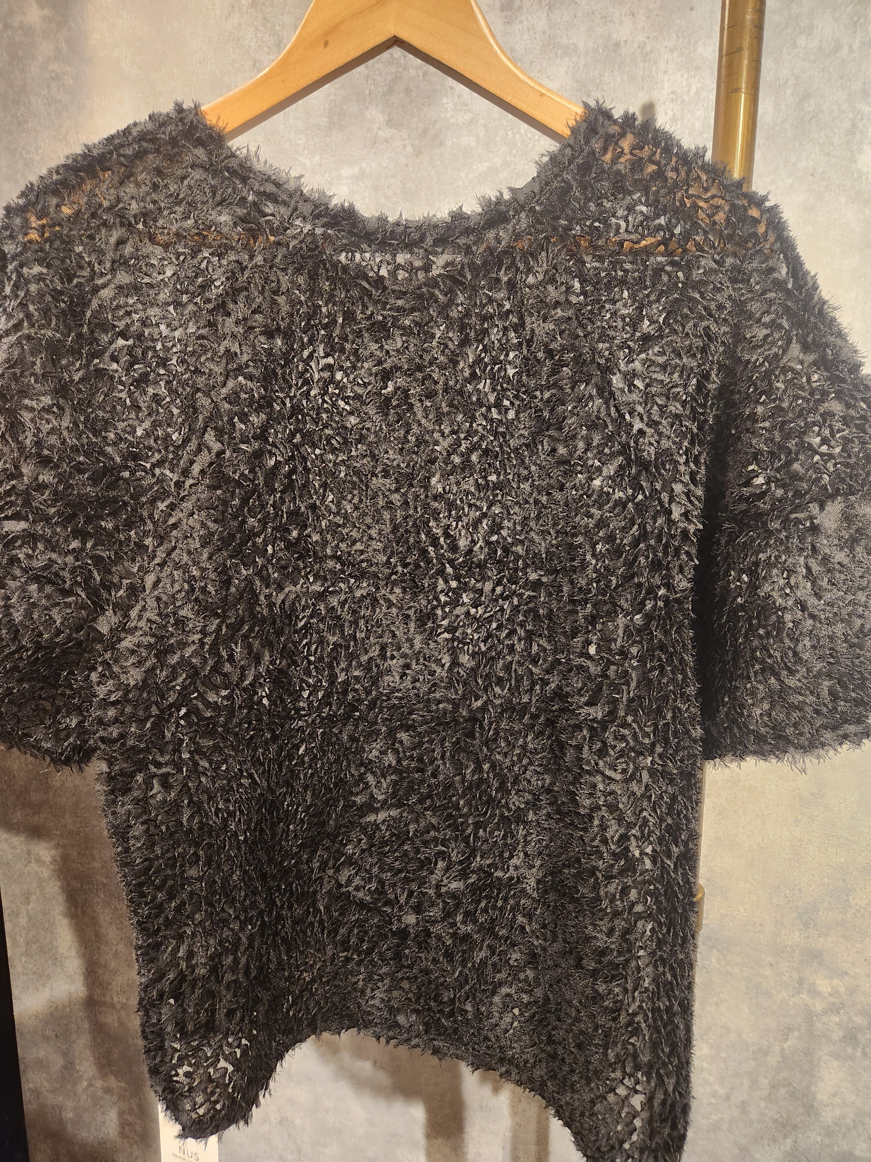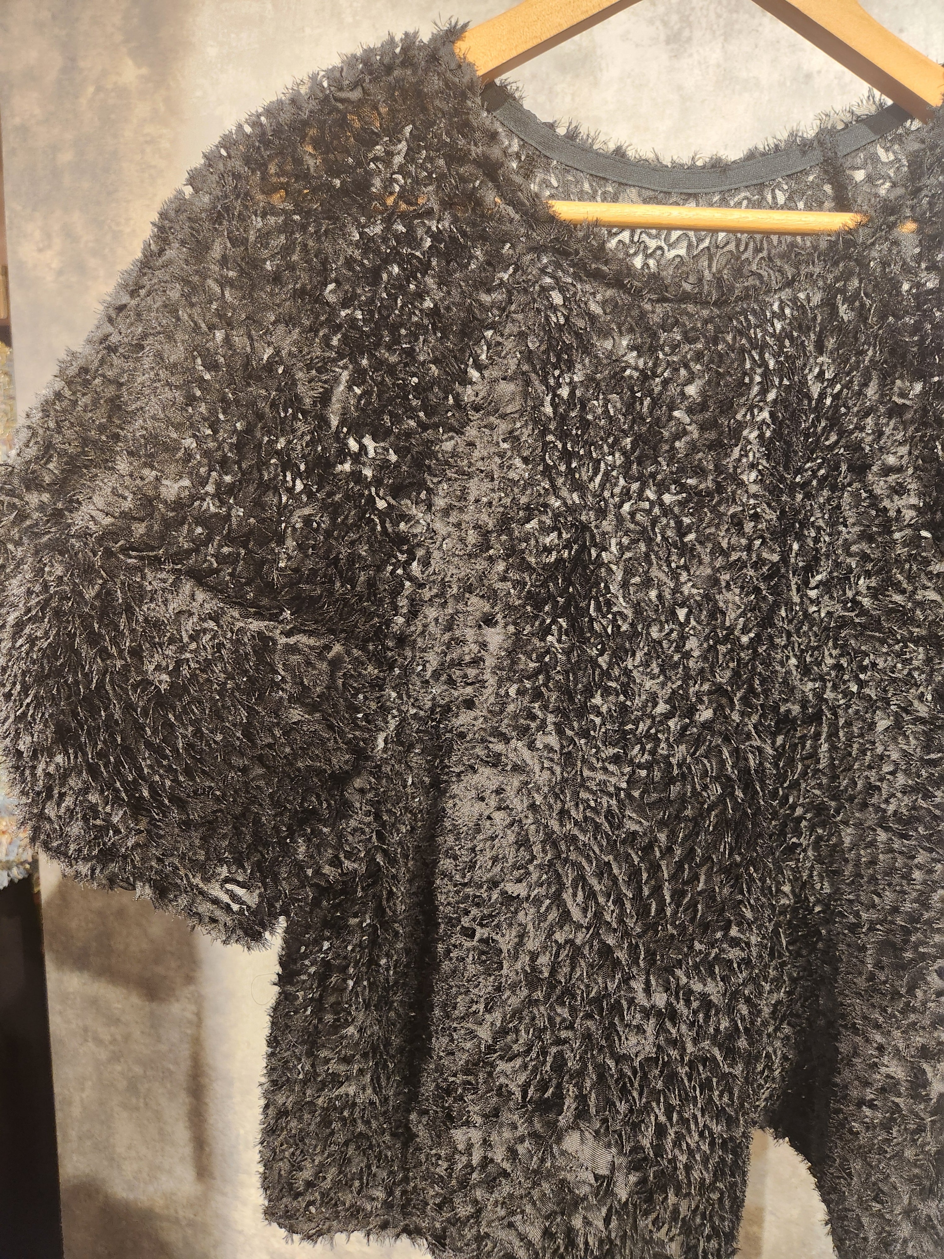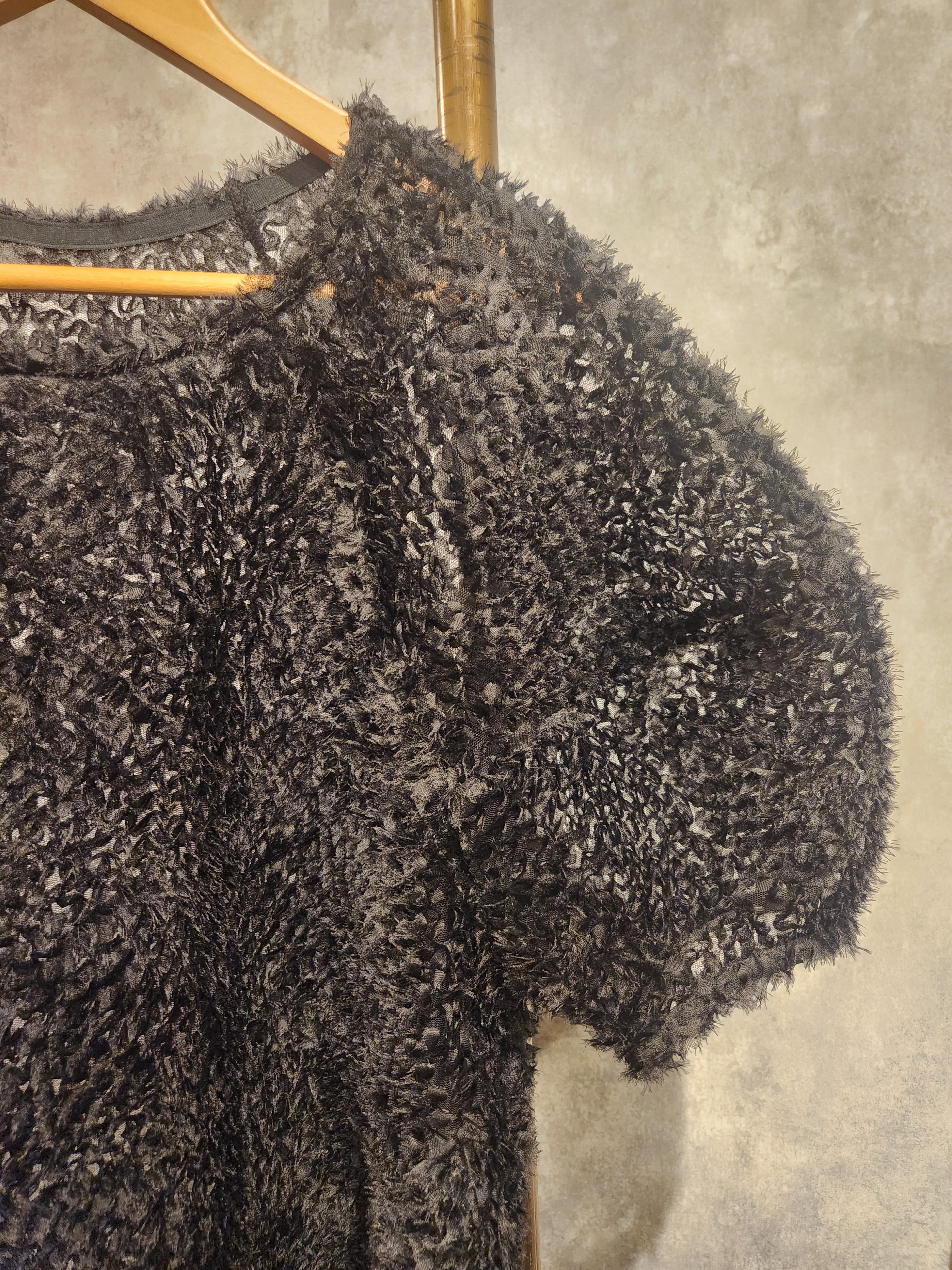 ベースのチュール生地にテープカットしたチュールを全面刺繡したデザイン。程よく透け感があるので、インナーにタートルネックなども合わせても◎