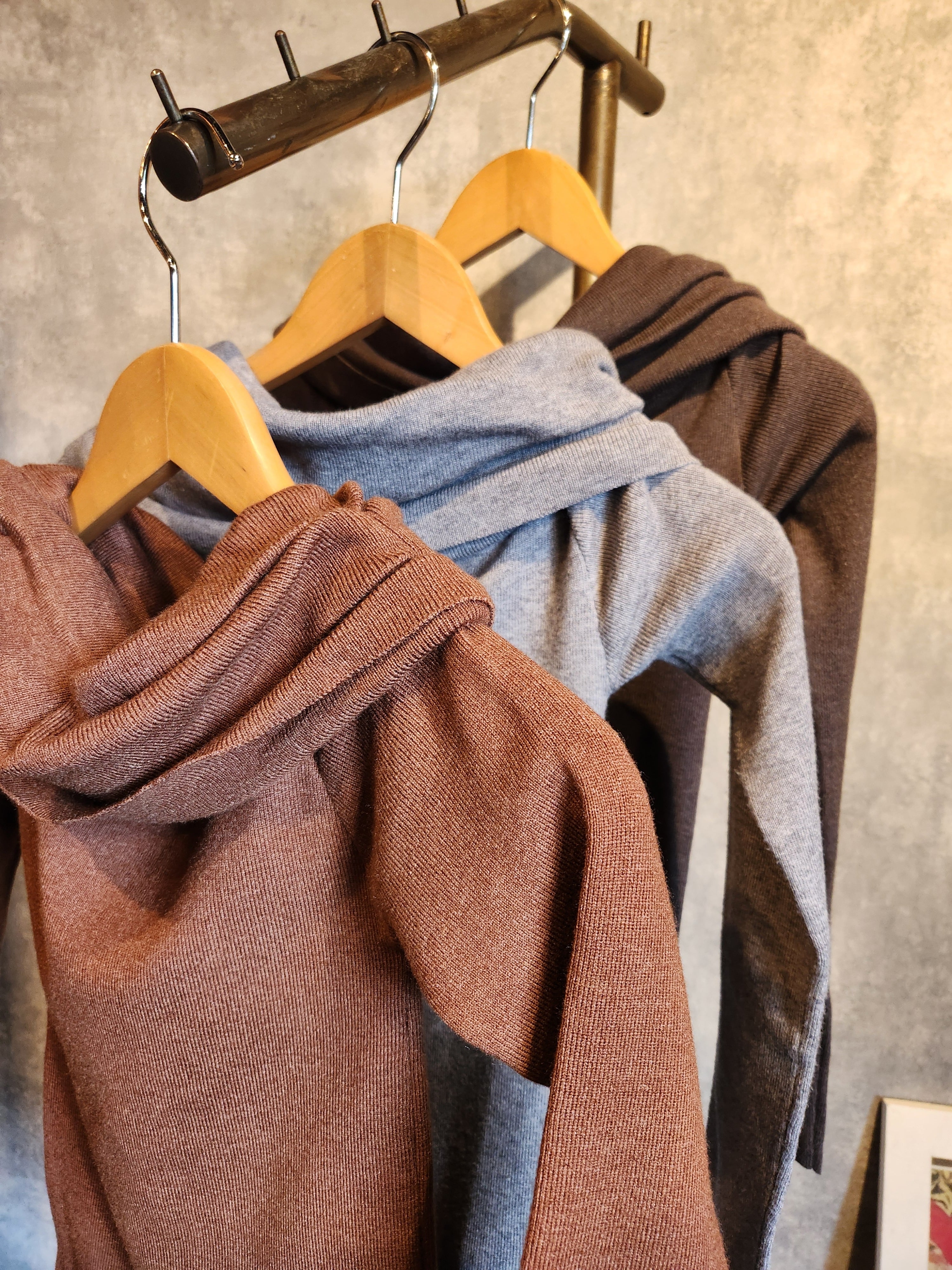 ハイゲージのしなやかなリブ素材が体に程よくフィットし、上品なシルエットを叶えます。