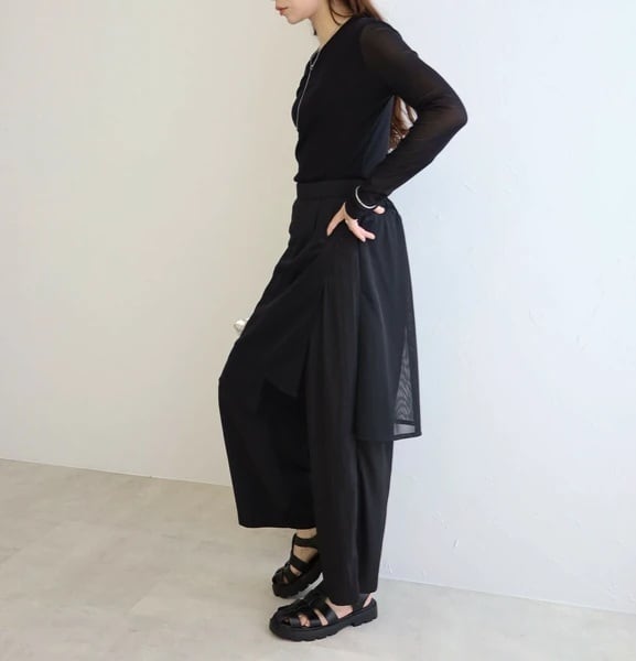 ウエストの前はフラットでスッキリ見え後ろはゴム使用で脱ぎ着もしやすい