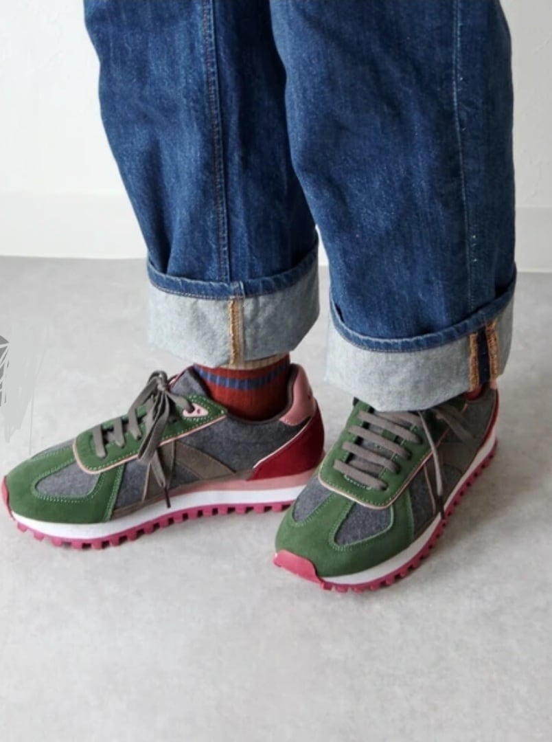 他には無いギザギザソールのエッジが効いたデザインに、レトロだけど今っぽい雰囲気の漂うキャッチーなカラーリングがオシャレ見えな1足です。