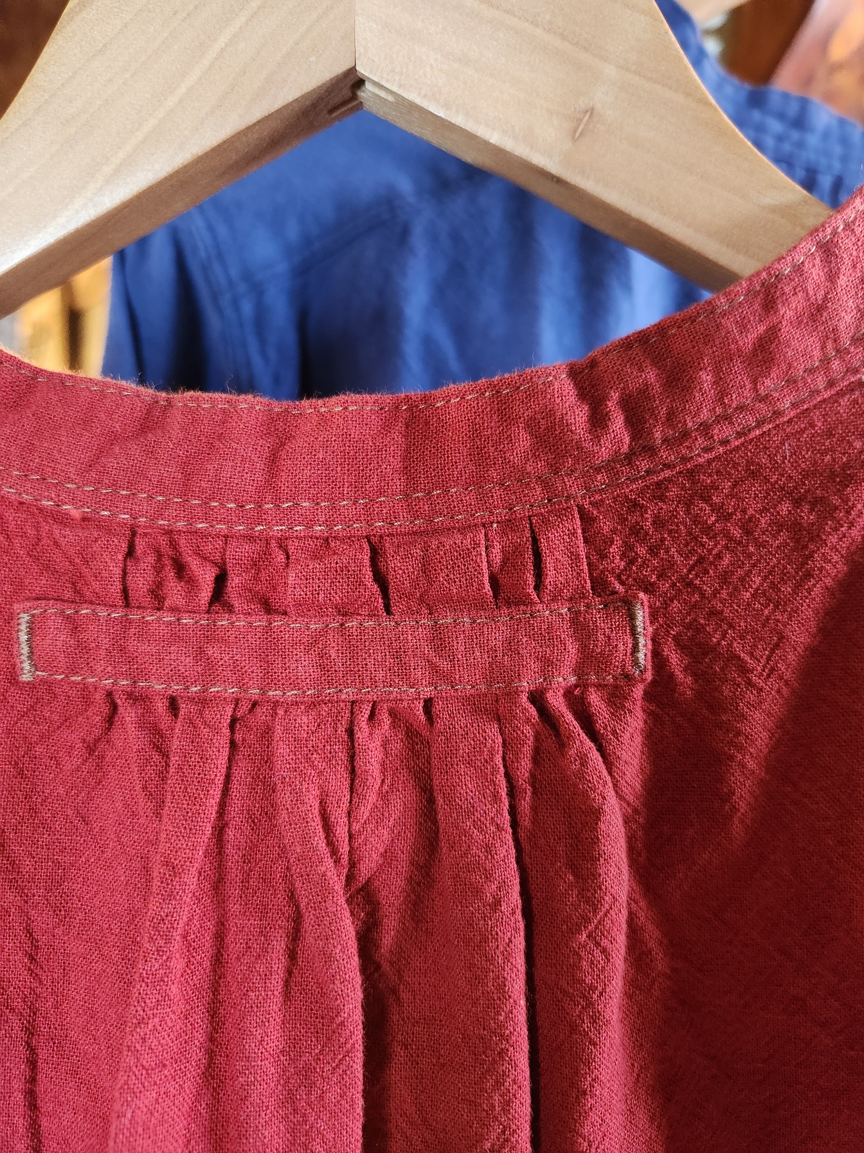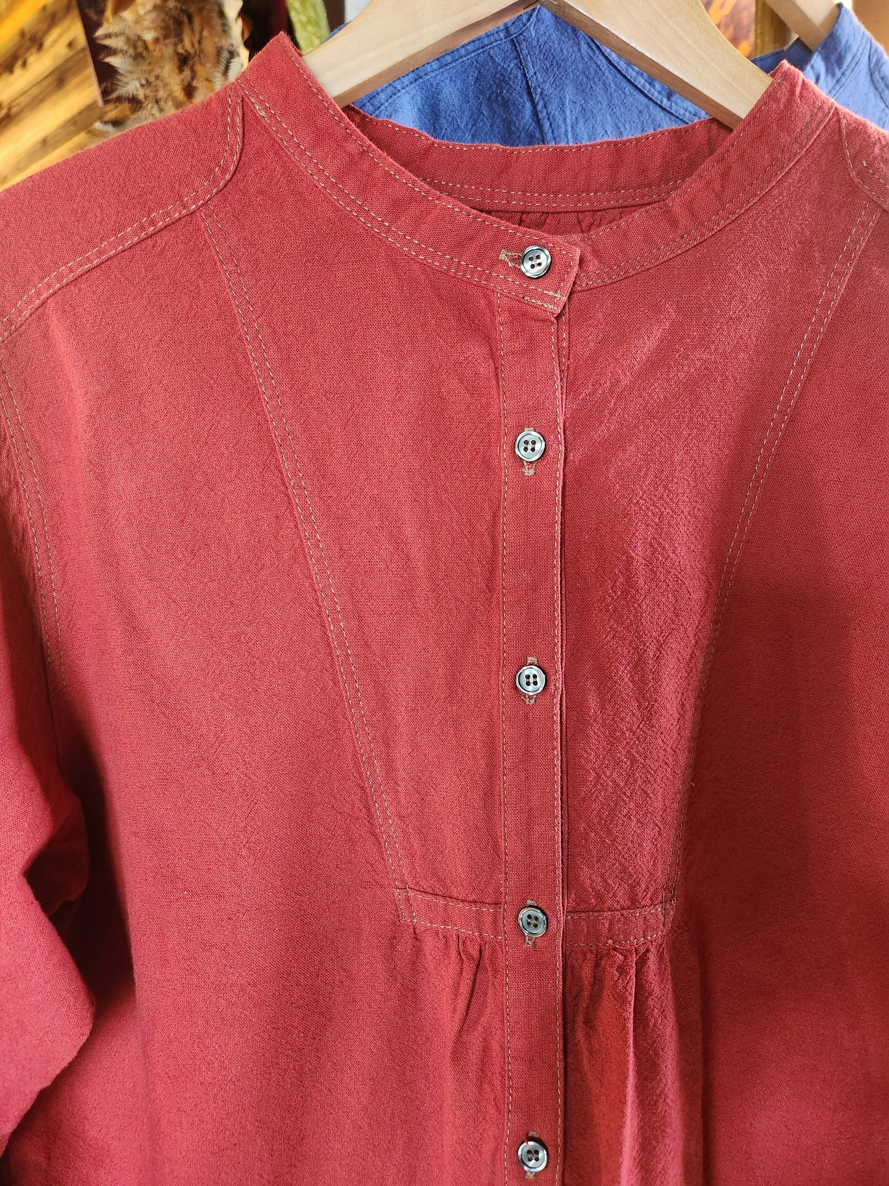 程よい厚みのあるコットンリネン生地を使用しています。シャリ感があり通気性もいいので、暑さの残る秋口にもおすすめです。