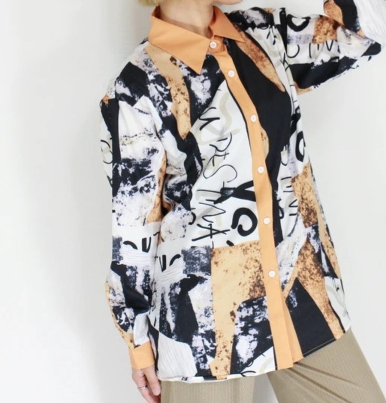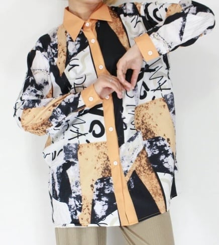 大胆なレタリングと抽象柄が織りなす、唯一無二のヴィンテージシャツ。