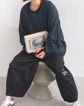 ストリート感のあるロゴプリントがさりげないポイントのボールシルエットパンツ。