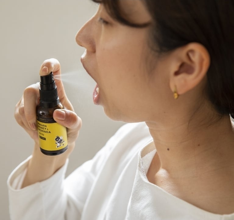 ニュージーランド産オーガニックMG1000+マヌカハニーに、プロポリスとスーパーフード・モリンガをプラス。アルコールフリーで家族みんなにやさしく、自然の力で口内をさっぱりとケア。
