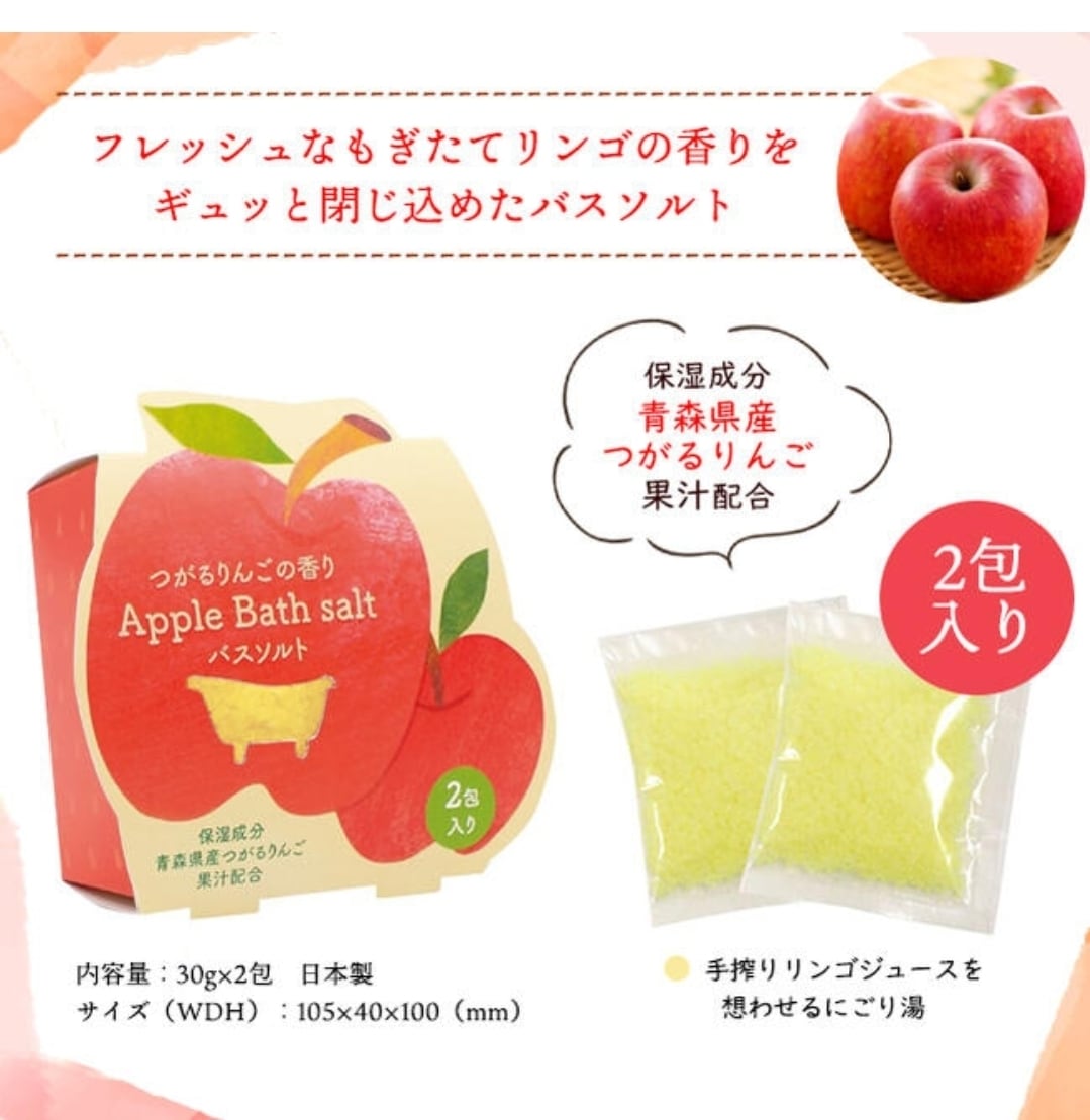 フレッシュな果実の香りをぎゅっと閉じ込めたバスソルト2包入り。