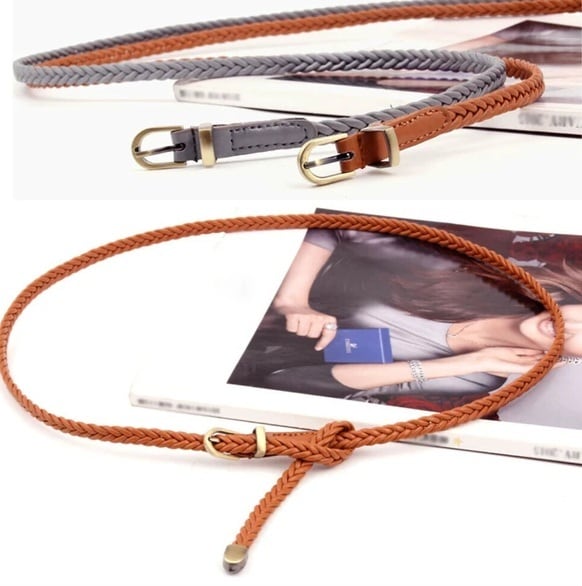 細身の編み込みデザインがとても女性らしいレディースレザーベルト