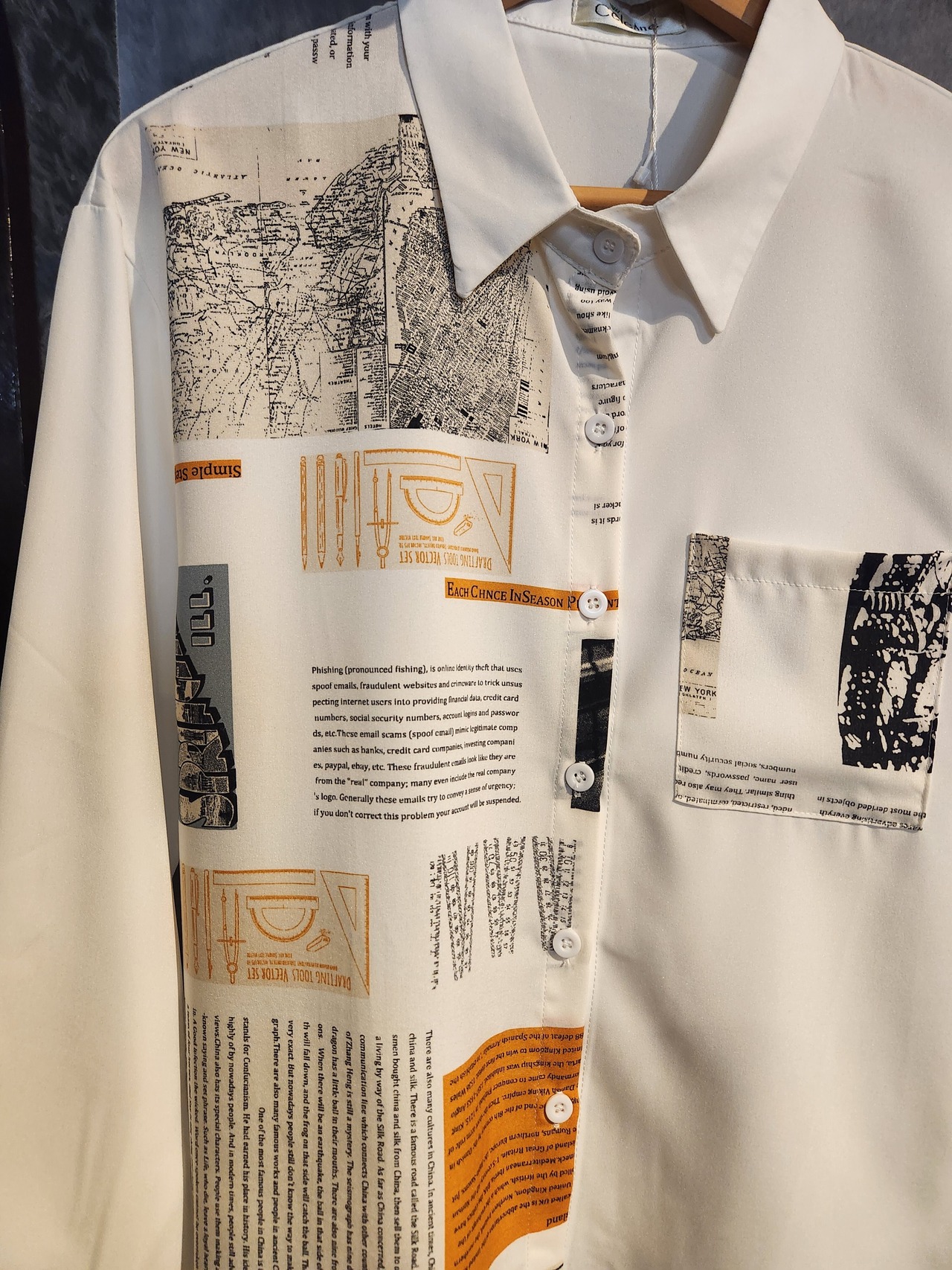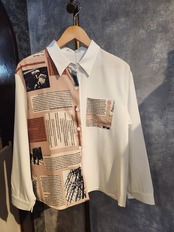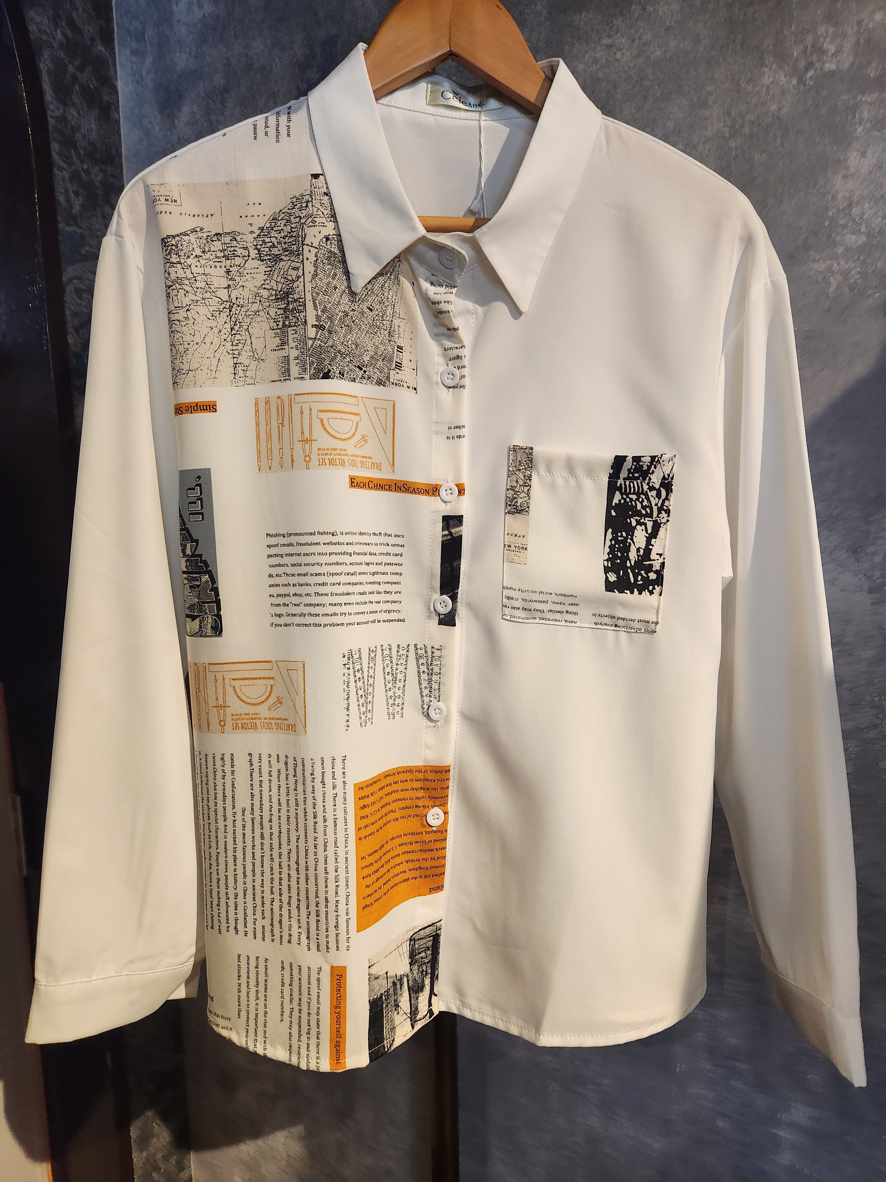 ロゴプリントデザインが目を惹くシャツブラウス。