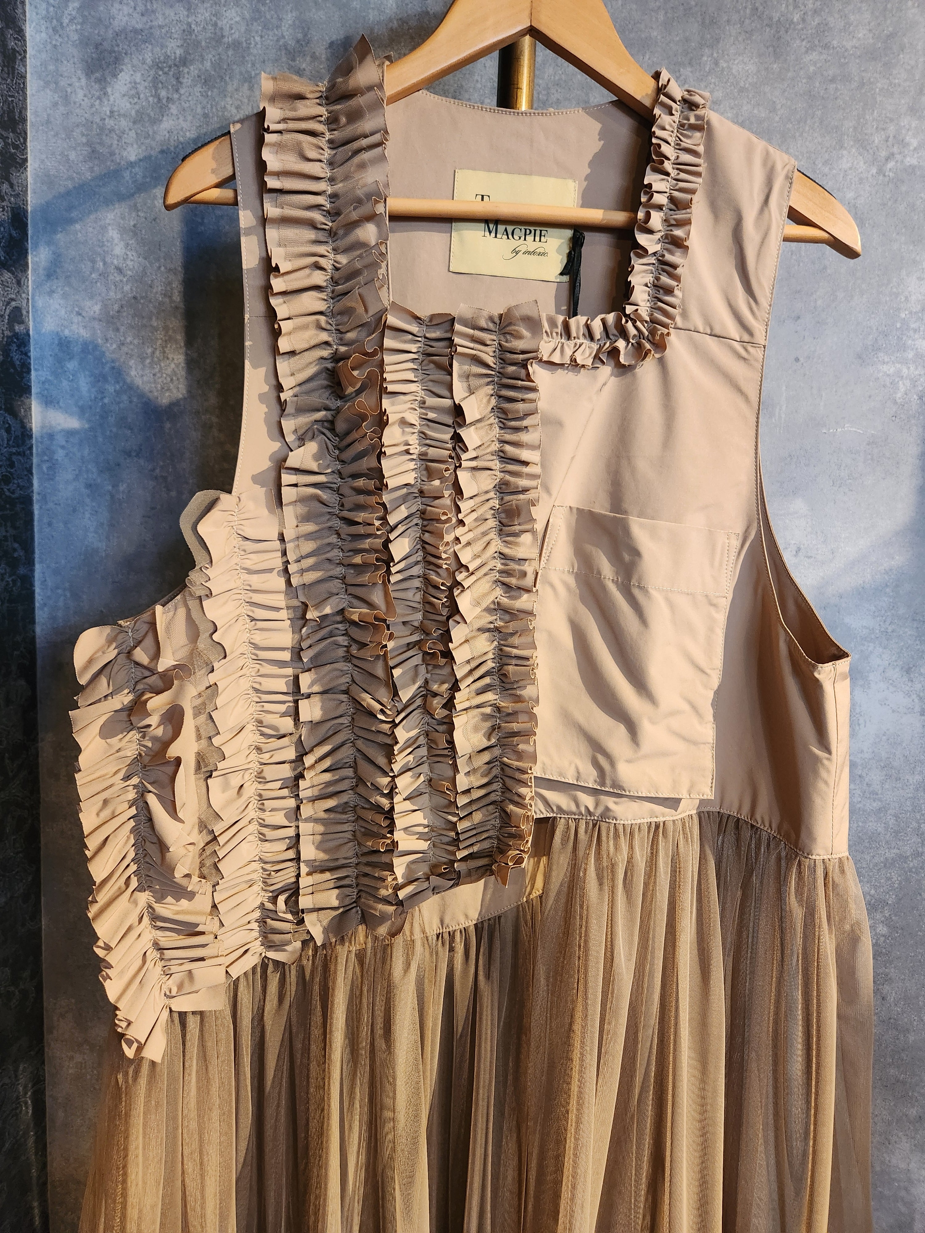 細かいフリルとチュールでできたティアード部分、ベスト部分はアシメ丈になっていたりと