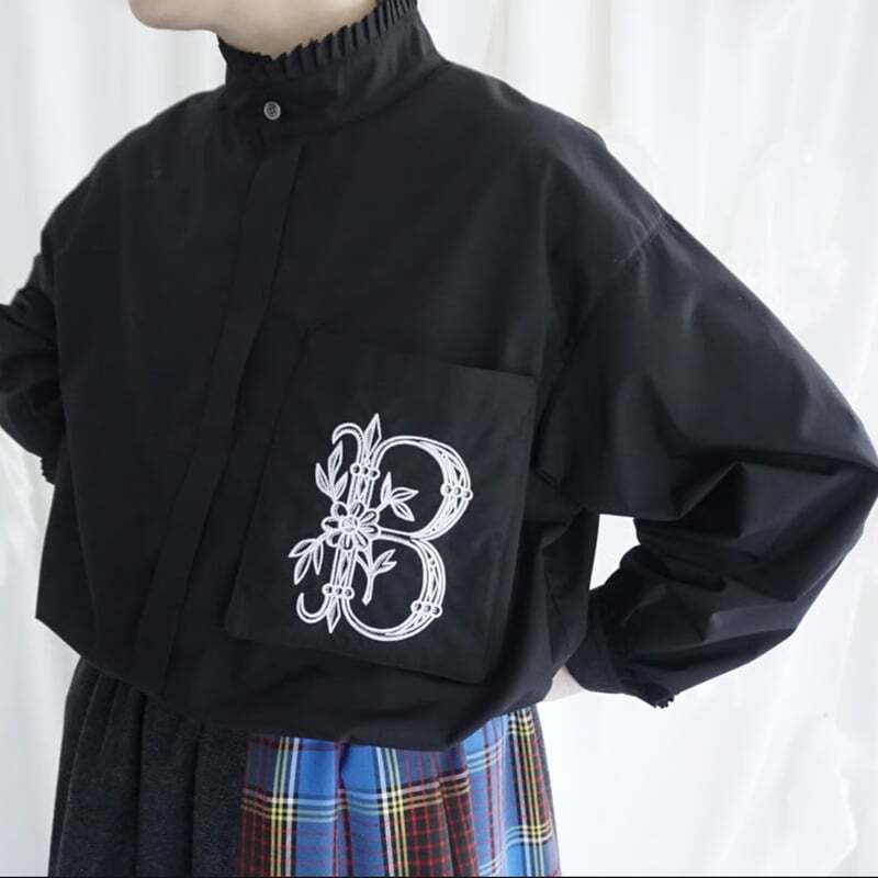 ポケットをつけて、その部分に大きめにBの飾り文字の刺繍を入れて、あまり無いようなデザインに仕上げています。