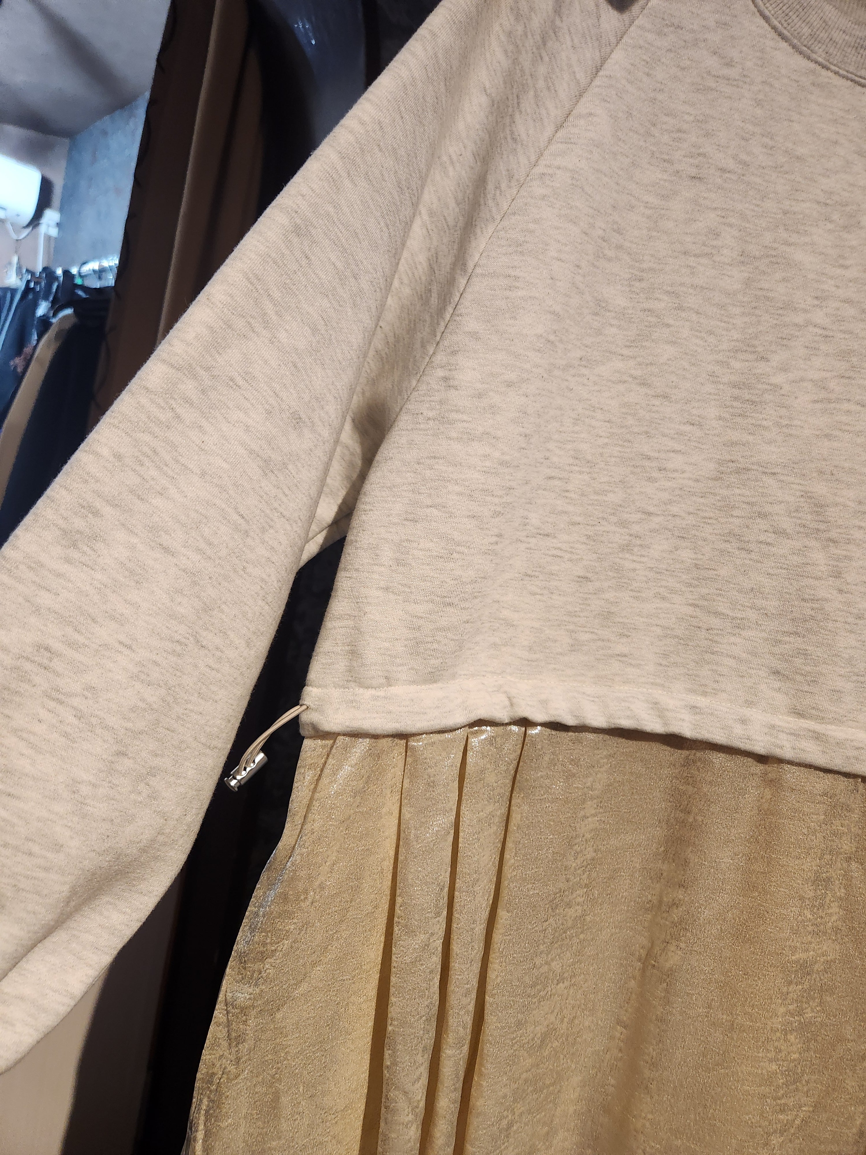 スウェットとスカートをコーディネートしているかのような、ドッキングワンピース。