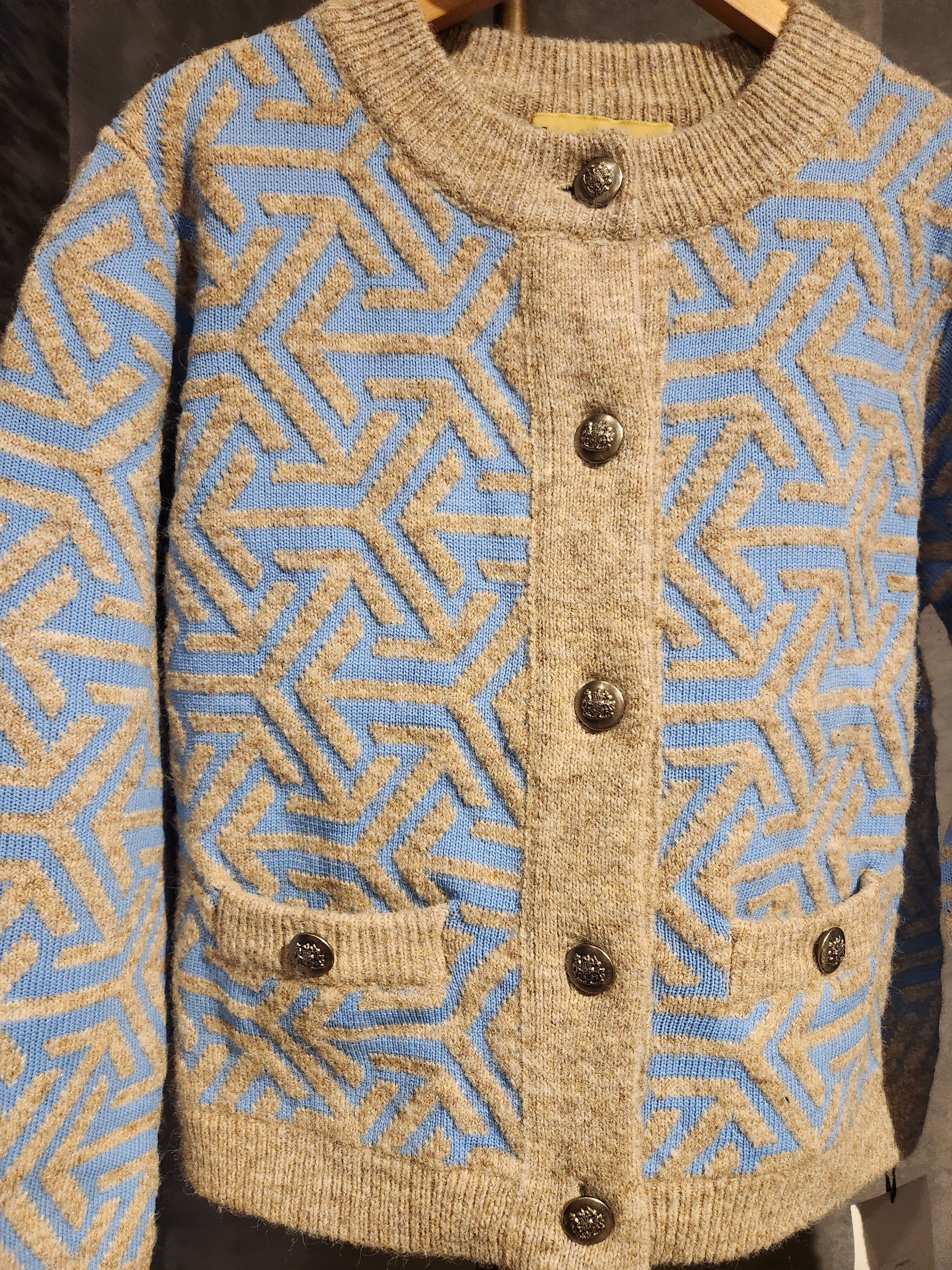 幾何学柄の厚手カーディガン