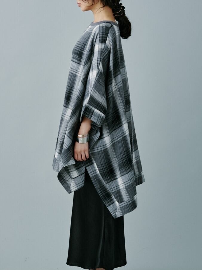 秋冬らしいチェック生地が目を惹くポンチョ。