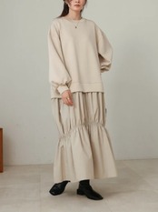 トップス部分には柔らかく着心地の良いカットソー生地を採用。スカート部分は軽やかで形をキープしやすい布帛素材。どちらも動きやすさと快適さを考えた素材で、デイリー使いにもぴったりです。