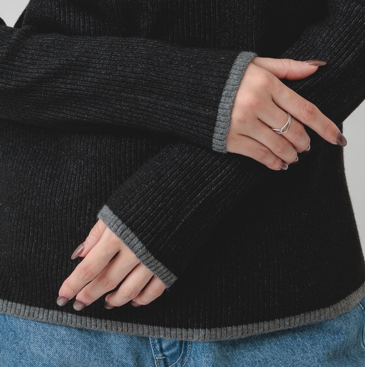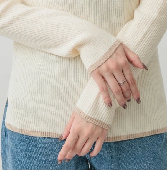 衿端・袖口・裾にさりげなく入った配色ラインで、大人っぽい印象のニットプルオーバーです。