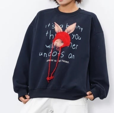 フロントにはニット帽をかぶったうさぎモチーフを施し、