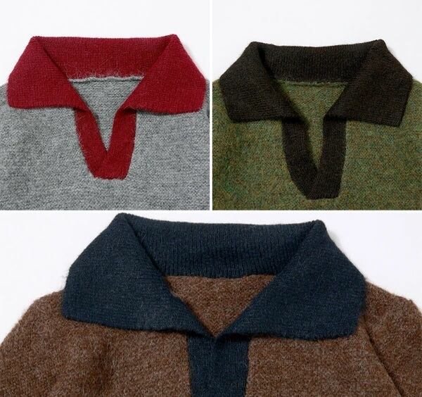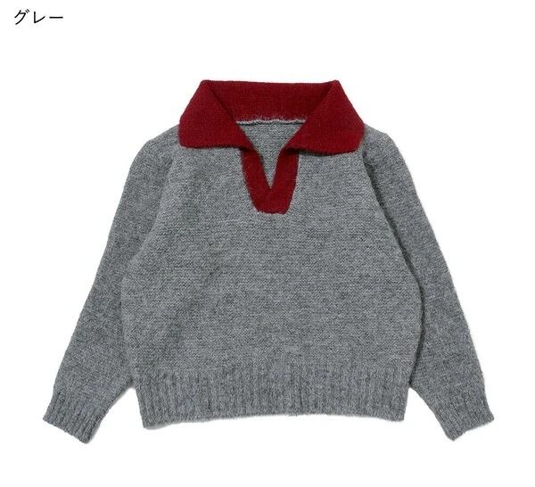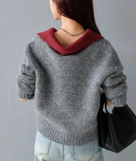 ラフな印象のバイカラースキッパーMIXニットトップス。